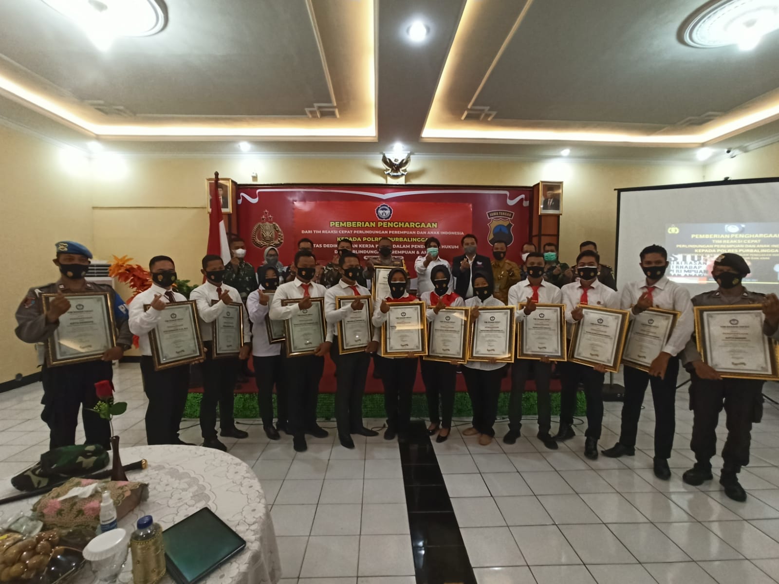 “Giat hari ini kami menyerahkan penghargaan kepada Kapolres Purbalingga AKBP Fannky Ani Sugiharto, S.I.K., M. Si., Kasat Reskrim IPTU Gurbacov, S. I. K., MH., Kanit PPA Hesti Nugrahaeni, S.H.,