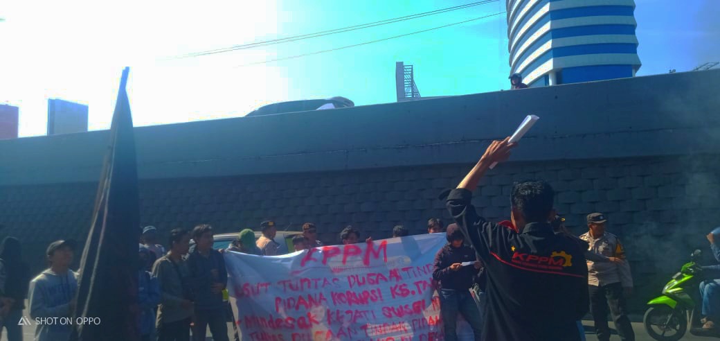 Kedatangan Puluhan Kader KPPM berunjuk rasa di depan Kejati Sulsel terkait Proyek yang bernilai 4 Milyar tersebut diduga ada manipulasi sehingga bobot Pekerjaan tidak sesuai dengan bestek yang dirancanakan.
