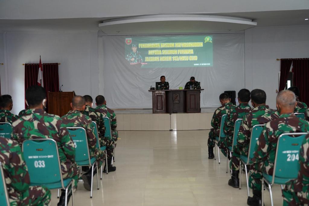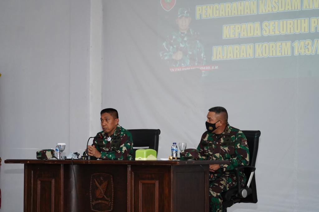 Sementara itu, saat memberikan pengarahan kepada para Perwira TNI AD yang berada diwilayah Korem 143/HO, Kasdam juga menegaskan tentang upaya antisipasi terkait Pilkada Serentak dan Wabah COVID-19.