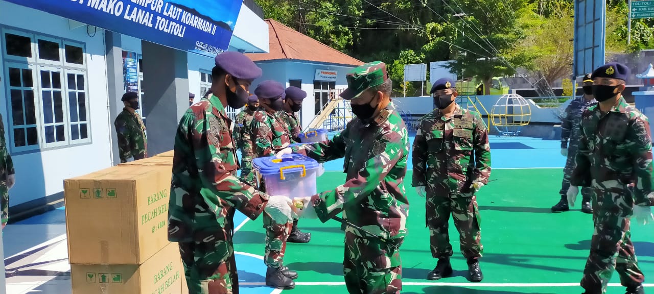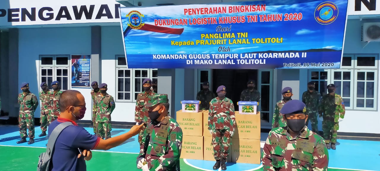 Sulawesibersatu.com – Tolitoli (16/5/202) Kunker Danguspurla Koarmada II Penyerahan bingkisan dukungan logistik khusus TNI tahun 2020 dari Panglima TNI kepada prajurit Lanal Tolitoli oleh Komandan Guspurla Koarmada II Laksma TNI Rahmad Eko Rahardjo, S.T., M.Tr. (Han) CHARMP.