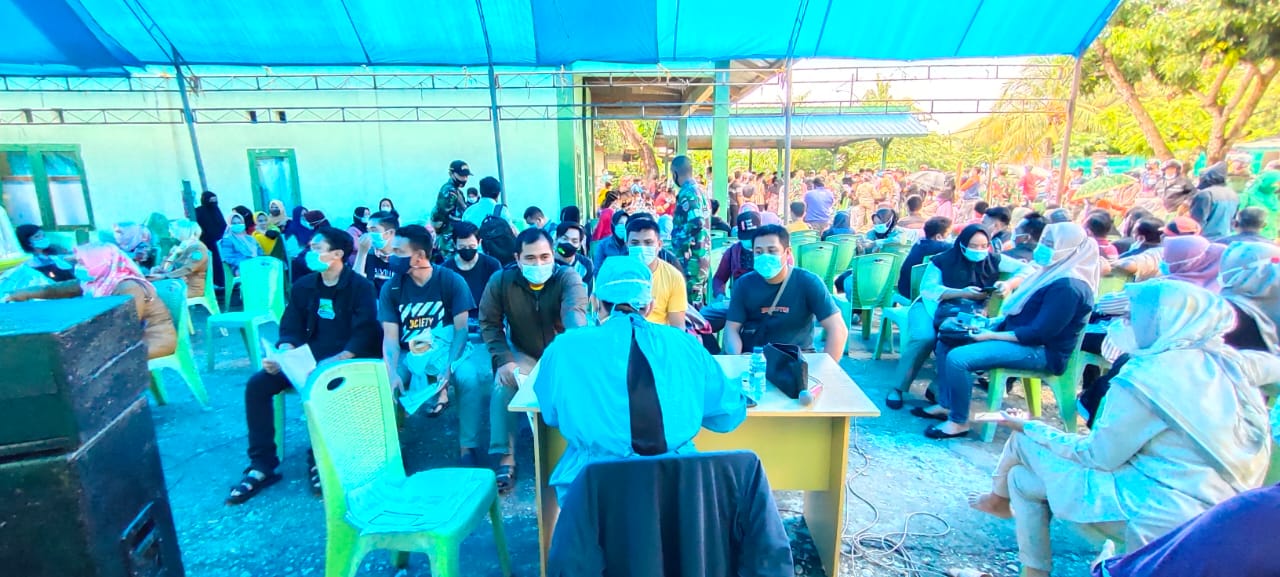 Konawe,Sulawesibersatu.com_ Tingginya antusiasme warga mengikuti vaksinasi massal tidak diikuti dengan jumlah vaksin yang disediakan oleh petugas vaksin, Ratusan warga di wilayah Koramil 1417-07/Unaaha terpaksa harus pulang karena tidak bisa menjalani Vaksinasi massal yang dilaksanakan oleh Kodim 1417 Kendari, Senin (12/7/2021).