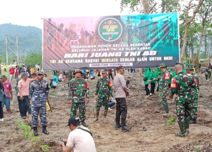 Pada kesempatan tersebut Dandim 1430/Konut Letkol Kav Sofyan mengatakan, kegiatan karya bakti yang dilaksanakan pada hari ini merupakan rangkaian kegiatan dalam rangka memperingati Hari Juang TNI AD dan juga pelaksanaan kegiatan penanaman pohon ini dilaksanakan sesuai dengan jadwal yang sudah ditentukan.