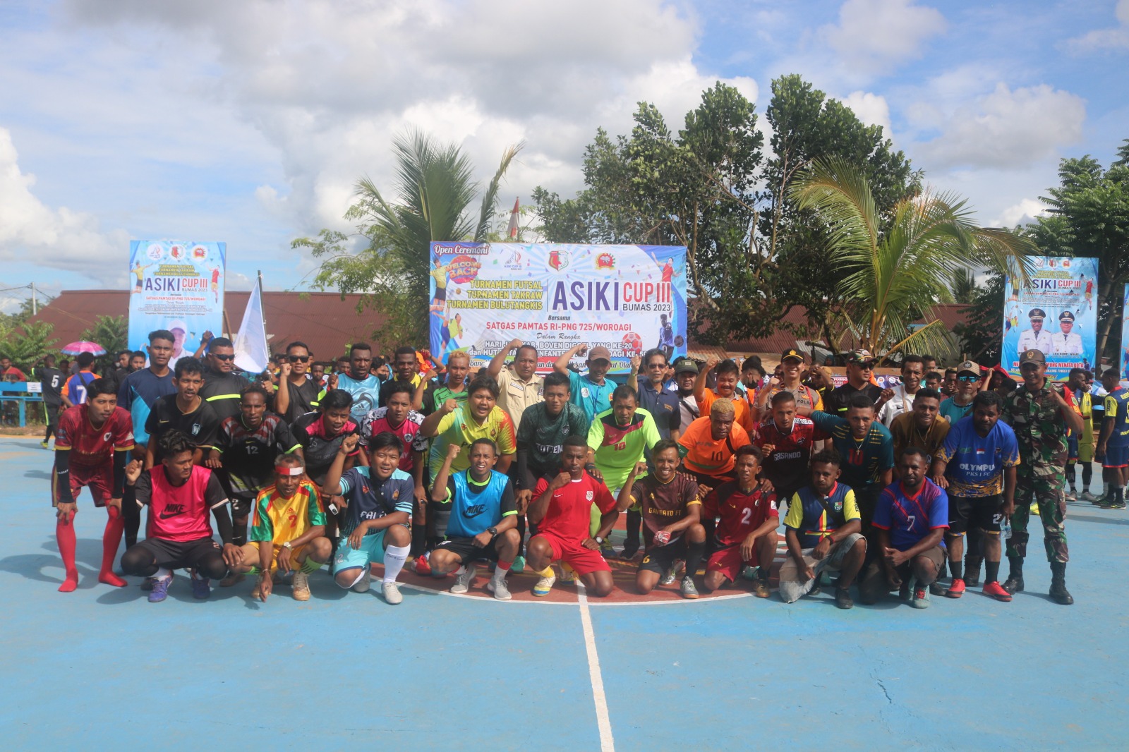 “Bekerjasama dengan kerukunan keluarga Bumas, dalam rangka memperingati sekaligus memeriahkan HUT Yonif 725/Woroagi yang ke 59, kita adakan Turnamen Futsal, Takraw dan Turnamen Bulu Tangkis Asiki Cup III Ta. 2023 di Asiki, sedangkan untuk Karya Bakti dilaksanakan oleh seluruh jajaran Pos Satgas Yonif 725/Wrg di sepanjang perbatasan wilayah Boven Digoel”, jelas Dansatgas.