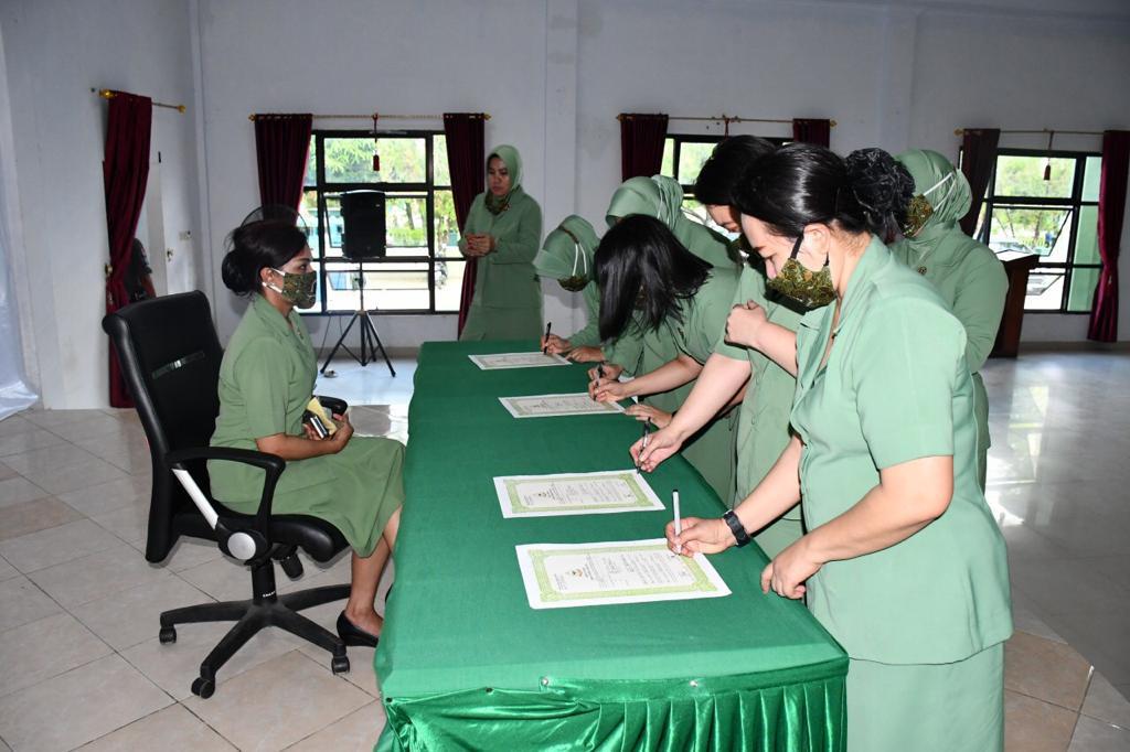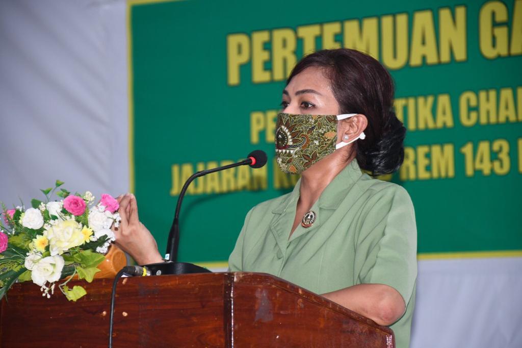 ”Menjadi seorang istri anggota prajurit harus penuh dengan kesabaran dalam menyelesaikan setiap permasalahan, isteri harus menjadi pemberi motivasi suami dan kita harus selalu menyiapkan mental suami. Suami tidak perlu dilibatkan dengan masalah-masalah yang tidak perlu, menjadi seorang isteri prajurit harus dapat hidup mandiri dan dukung penuh tugas suami,” tutur Ketua Persit KCK Koorcab Rem 143.