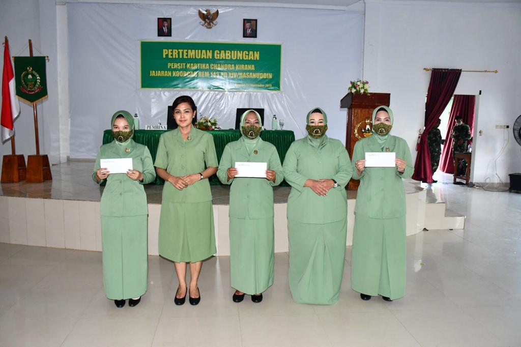 “Kegiatan pertemuan gabungan merupakan kegiatan rutin yang dilaksanakan setiap 3 bulan sekali, sebagai ajang silaturahmi dan kebersamaan antar anggota persit KCK gabungan yang ada di wilayah Kendari,” imbuh Kapenrem.