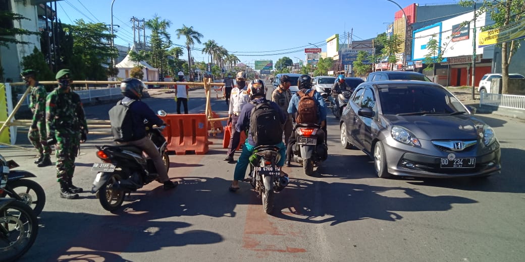 Gowa,Sulawesibersatu.com-Satuan Lalu lintas Polres Gowa siang ini melakukan penyekatan di Jl.Sultan Hasanuddin dan beberapa jalan protokol Batas Kabupaten Gowa dan Kota Makassar. Hal ini untuk mencegah arus mudik lebaran 2020 di tengah pandemi virus corona atau COVID-19, Senin 11/05/2020.