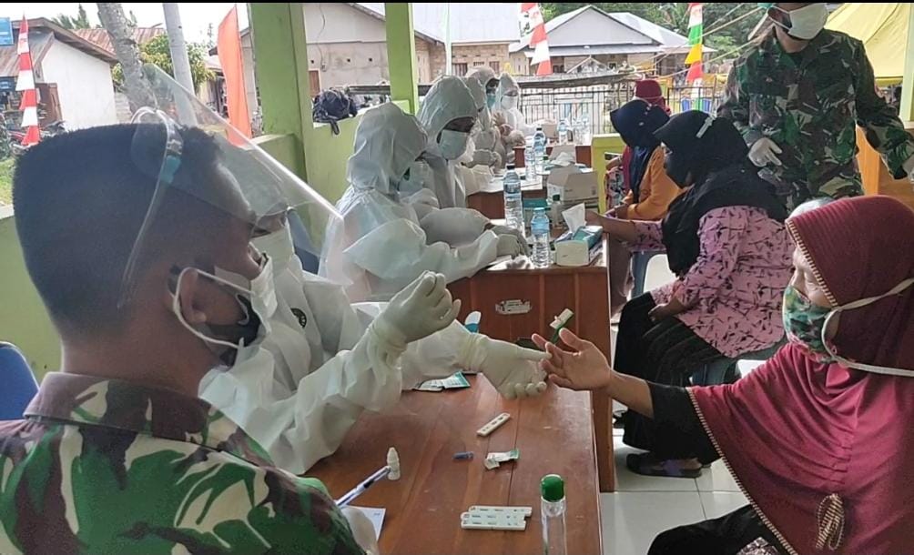 Kegiatan Rapid Test didukung personel Dinkes RS. Ismoyo Kendari sebanyak tujuh personel dan puskesmas Nambo. (Umar Dany).