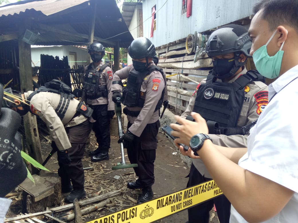 Takalar,Sulawesibersatu.com-Satuan Reskrim Polres Takalar bersama Laboratorium Forensik Polda Sulsel dan Jibom Detasemen Gegana Satuan Brimob Polda Sulsel melakukan olah Tempat Kejadian Perkara (TKP) Pasca ledakan diduga mortir di Wilayah hukum Polres Takalar. Rabu, (27/5/2020).