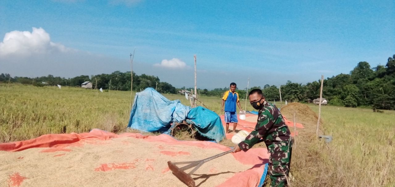 Pasca Panen, Babinsa Bantu Jemur Padi Petani