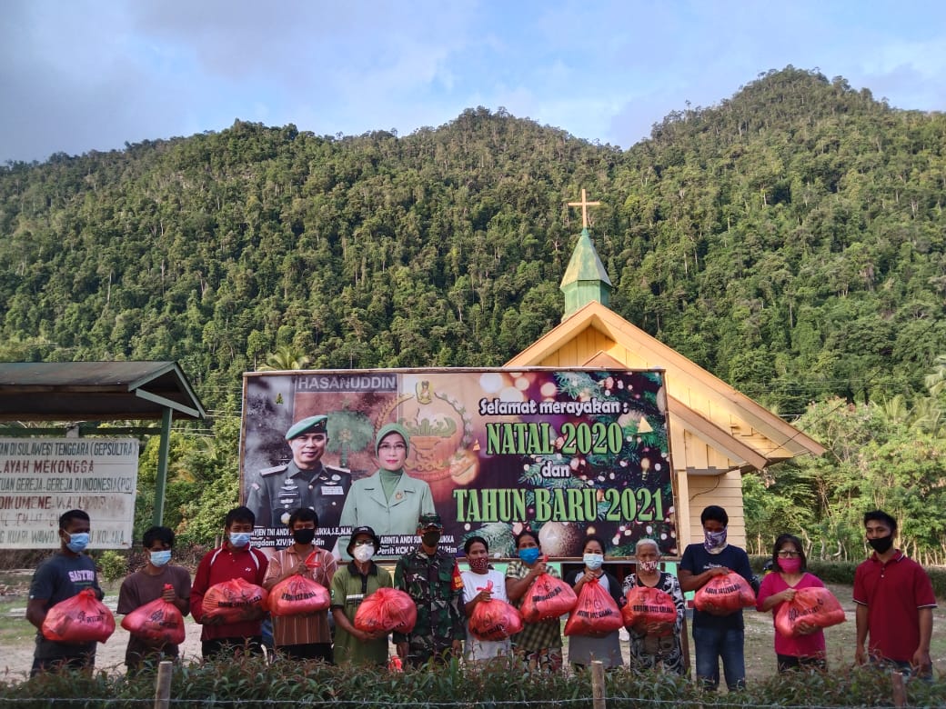 KOLUT,Sulaweibersatu.com – Koramil Jajaran Kodim 1412/Kolaka menyalurkan bantuan Sembako dari Pangdam XIV/Hasanuddin Mayjen TNI Andi Sumangerukka.,S.E.,M.M., kepada warga kurang mampu dalam rangka Hari Natal. Salah satunya di Geraja Oikumene Desa Watutoru Kec. Wawo Kab. Kolaka Utara,Kamis 24/12/20.