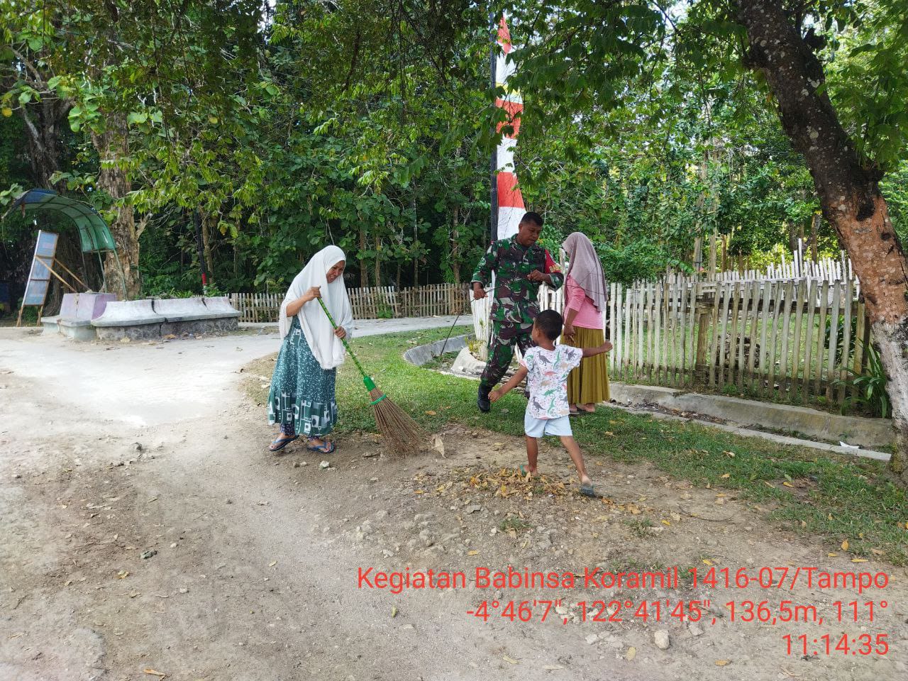 Muna,Sulawesibersatu.com – Babinsa Koramil 1416-07/Tampo, Kodim 1416/Muna bersama ibu-ibu PKK desa Bangunsari melaksanakan kegiatan kerja bakti sosial membersihkan jalan dan parit serta membersihkan halaman, bertempat di desa Bangunsari Kec. Lasalepa Kab. Muna, (18/08/2023).