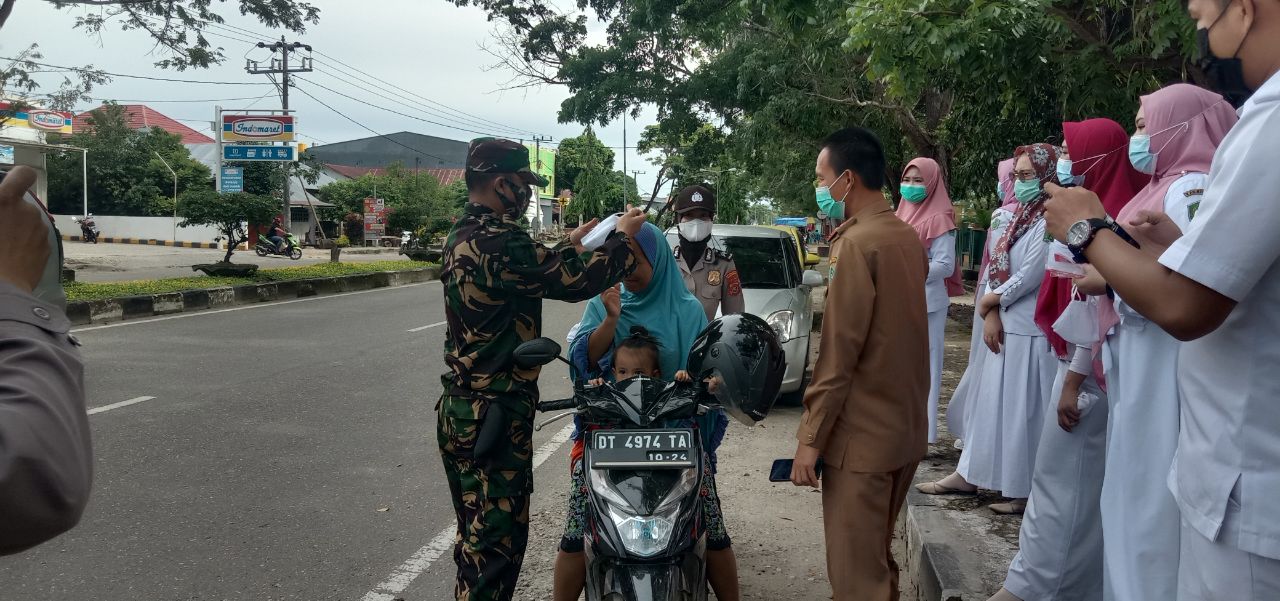 Salah satu bentuk kepedulian TNI dalam mencegah penularan Covid-19, disamping meringankan beban masyarakat yang saat ini dalam kesulitan di tengah pandemi, yaitu sangat perlu upaya nyata, seperti yang dilakukan Babinsa Serka Indra dan Serda Jaswanto dengan membagikan Masker kepada pengendara yang melintas.