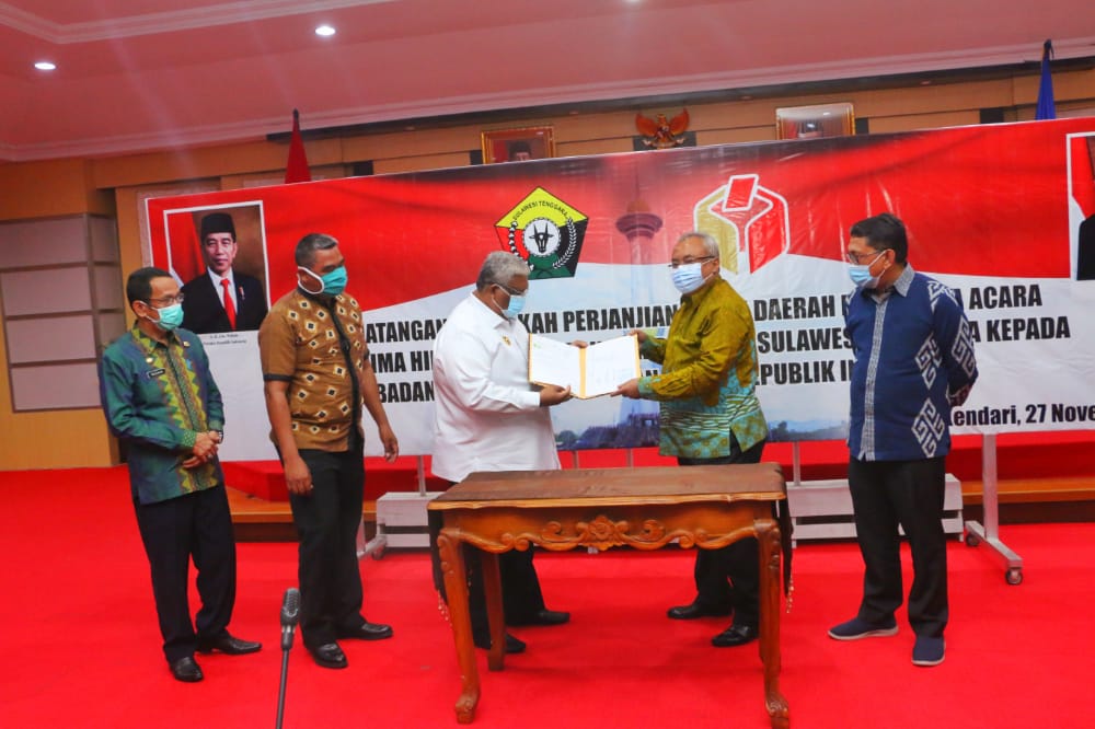 Seremoni hibah aset milik pemprov itu dilaksanakan dalam bentuk Penandatanganan Nota Perjanjian Hibah Daerah Atas Tanah, Bangunan, dan Saluran Sekunder Milik Pemprov Sultra kepada Bawaslu Provinsi Sultra oleh Gubernur Sultra Ali Mazi di Rujab Gubernur.