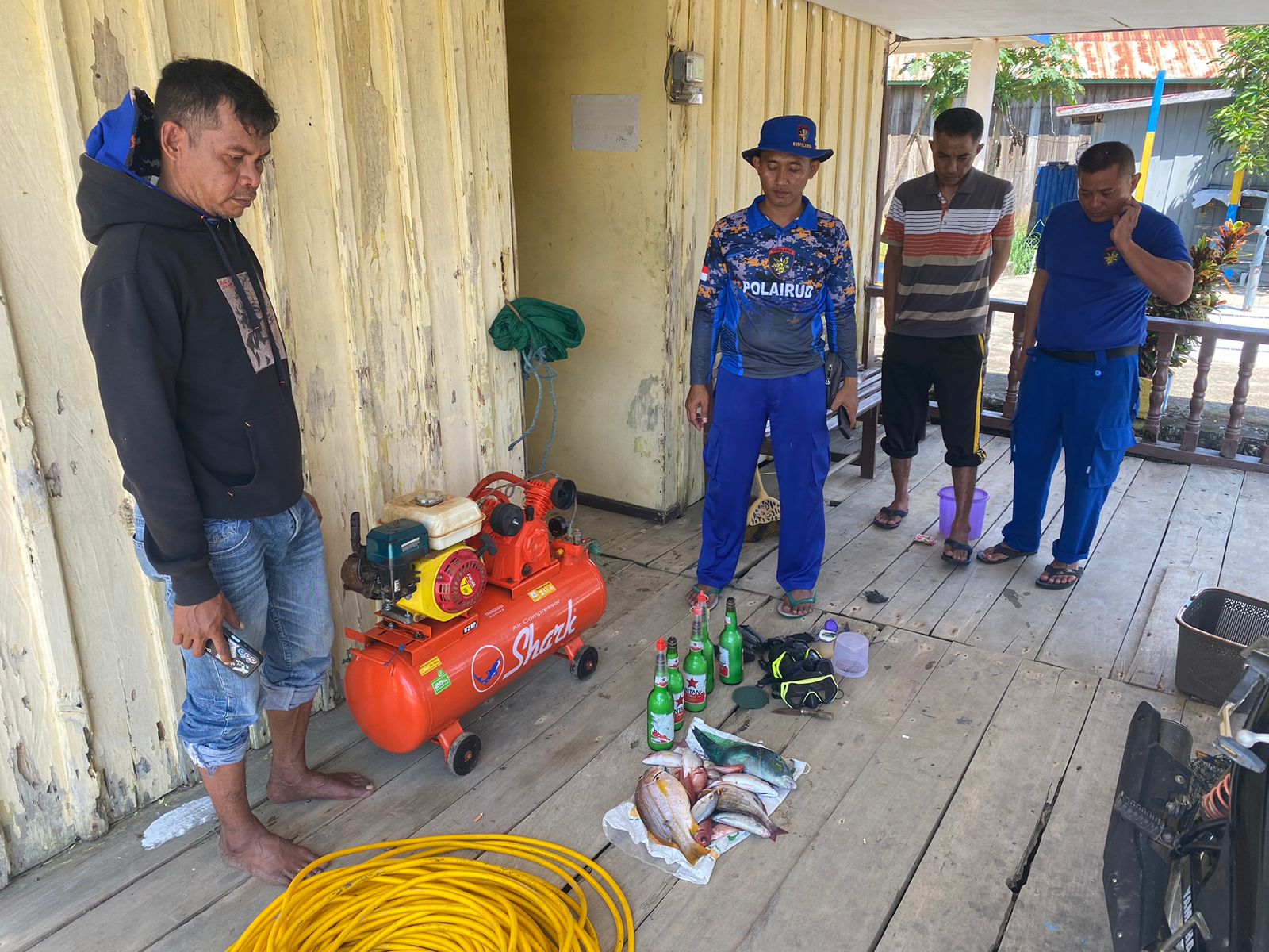 Dalam pengamanan tersebut, barang bukti yang berhasil diamankan antara lain 5 botol bahan peledak (dikemas dalam botol kaca merk Bir Bintang), 1 unit perahu bermesin tanpa nama berwarna kuning, 1 set kompresor, 4 buah kacamata selam, 6 biji pemberat dari bahan timah, 8 buah sumbu ledak/dopis cadangan, 1 gulung obat nyamuk, 1 buah korek api gas, dan 4 kg ikan karang campuran.