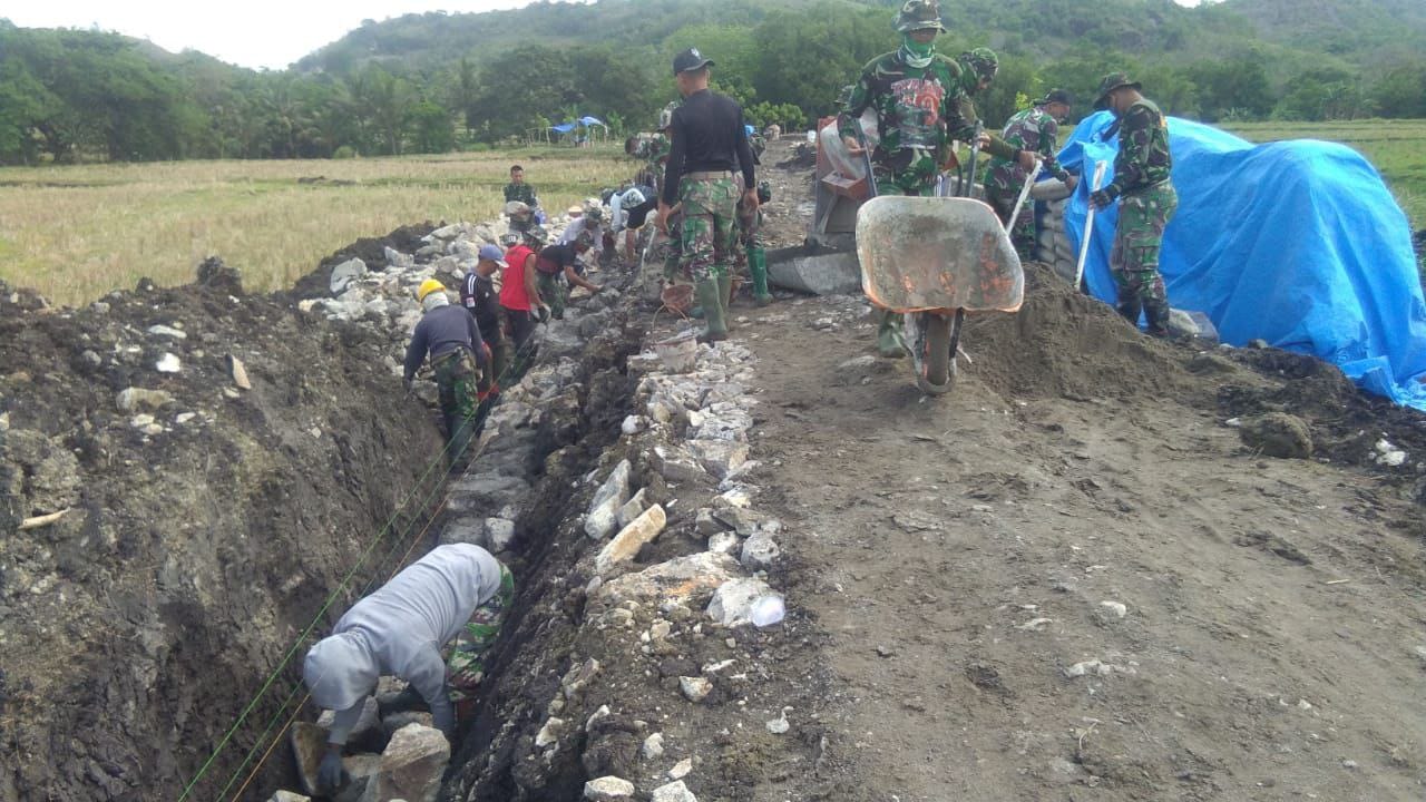 Personil itu disebar dibeberapa titik wilayah TMMD, salah satunya pengerjaan saluran Irigasi sepanjang 200 meter yang akan dikerjakan hingga 21 Oktober 2020.
