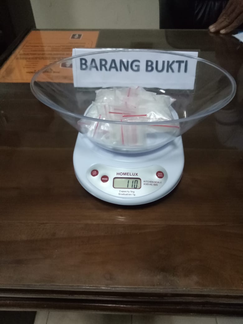 Barang Bukti Kasus Narkotika yaitu 2 (dua) Paket/bungkus besar dengan berat Brutto 101,00 Gram,6 (delapan) Paket/bungkus kecil dengan berat Brutto 9 Gram dan untuk Barang Bukti Non Narkotika yaitu 1 (satu) Unit HP OPPO Warna Silver,2 (dua) unit timbangan digital,135 (seratus tiga puluh lima) sachet bening ukuran 3×5,Uang tunai Rp. 25.500.000,- (dua puluh lima juta lima ratus ribu rupiah),1 (satu) pirex kaca,2 (dua) sendok/shabu,1 (satu) wadah plastik tempat penyimpanan Shabu, 2 (dua) buah korek gas.