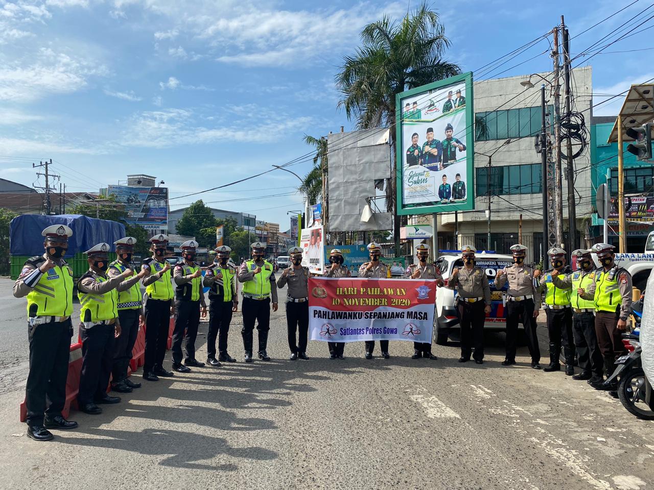 Gowa, Sulawesibersatu.com – Sat Lantas Polres Gowa mengajak para pengendara yang melintas di perempatan jalan malino – jl usman salengke, lebih tepatnya di Traffic light Pos 700 jl. Poros malino kel.Sombaopu Kabupaten Gowa,Selasa 10 Nopember 2020.