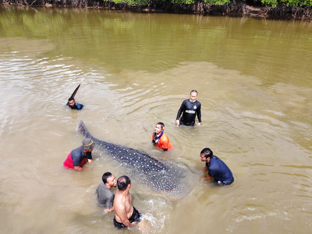 “Kondisi pada saat ikan hiu Kami lepas pada Perairan yang kedalaman di perkirakan sekitar kurang lebih 6 meter ikan hiu itu dalam kondisi responsif,”Tutupnya