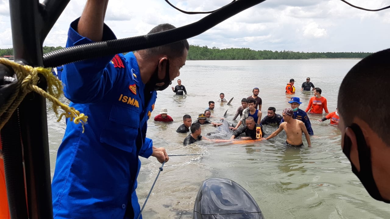 Lanjut Akbp Mulkaifin, SIK.Kasubdit Gakkum Dit Polairud,evakuasi dilakukan dengan cara membukus Ikan tersebut mengunakan kain dan pelampung lalu mendorong dan menarik badan ikan ke tempat yang dalam.