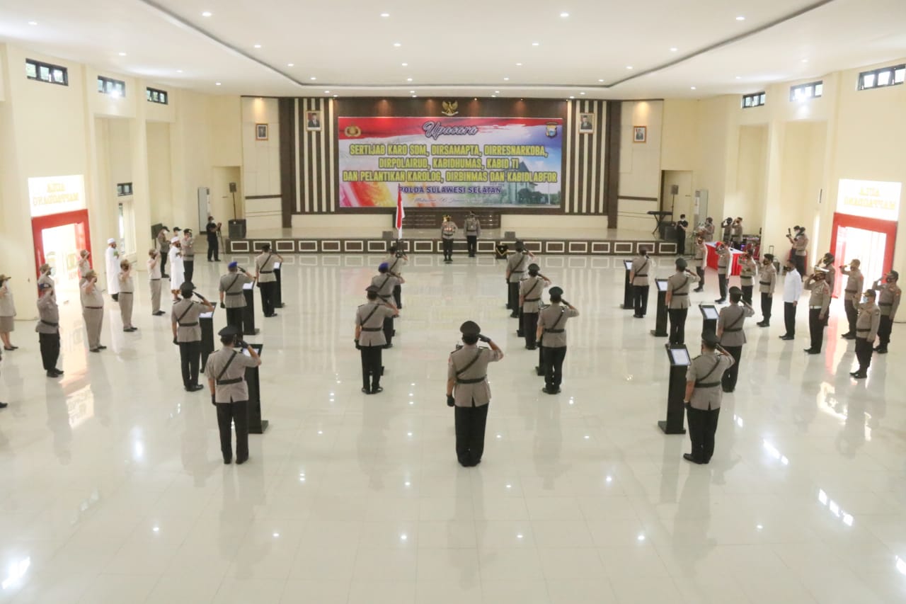 Adapun jabatan yang diserahterimakan yakni Karo SDM, Dir Samapta, Dir Resnarkoba, Dir Polairud, Kabid TIK, Kabid Humas, serta pelantikan Karo Log, Dir Binmas, dan Kabid Labfor Polda Sulsel.