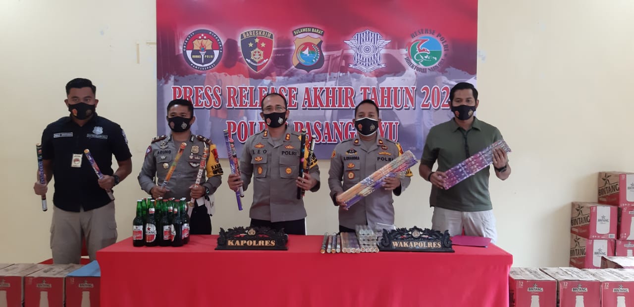 Selain itu, Personil Polres Pasangkayu juga berhasil menyita Barang Bukti hasil Kegiatan Rutin Yang Ditingkatkan (KRYD) pasca perhitungan suara, Perayaan Natal dan pergantian tahun ke 2021 sejak tanggal 18 desember 2020 sampai tanggal 31 Desember 2020 sebanyak 40 Dos Bir dan 79 Petasan berbagai merk yang disita di beberapa tempat dalam wilayah hukum Polres Pasangkayu”.Tuturnya