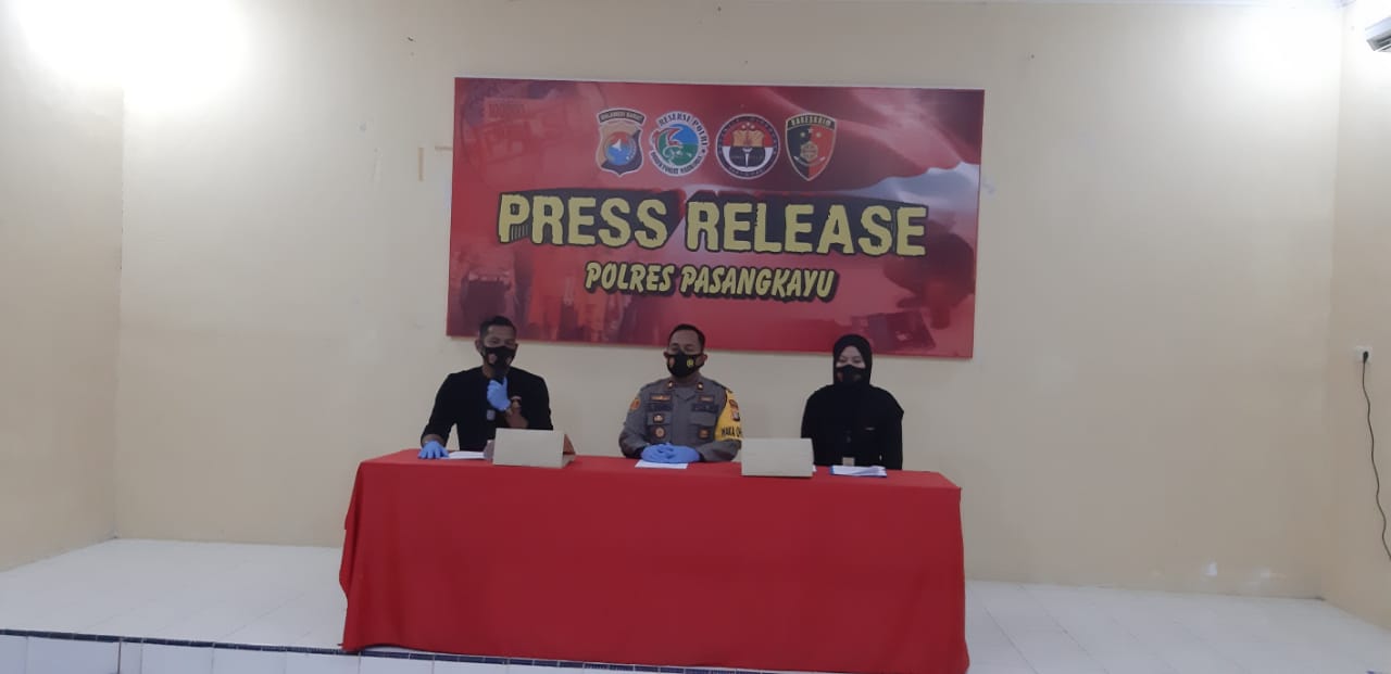 Didampingi Kasat Reskrim AKP Pandu Arief Setiawan S.H, S.I.K dan Kanit PPA IPDA Tina Tresnasari S.Tr.K, Waka Polres Pasangkayu Kompol Ade Chandra C.Y, S.I.K memaparkan Peristiwa persetubuhan terhadap anak dibawah umur tersebut yang terjadi di salah desa di Kecamatan Pasangkayu pada Minggu malam 6 Juni 2021 tanpa menghadirkan tersangka karena masih dibawah umur.