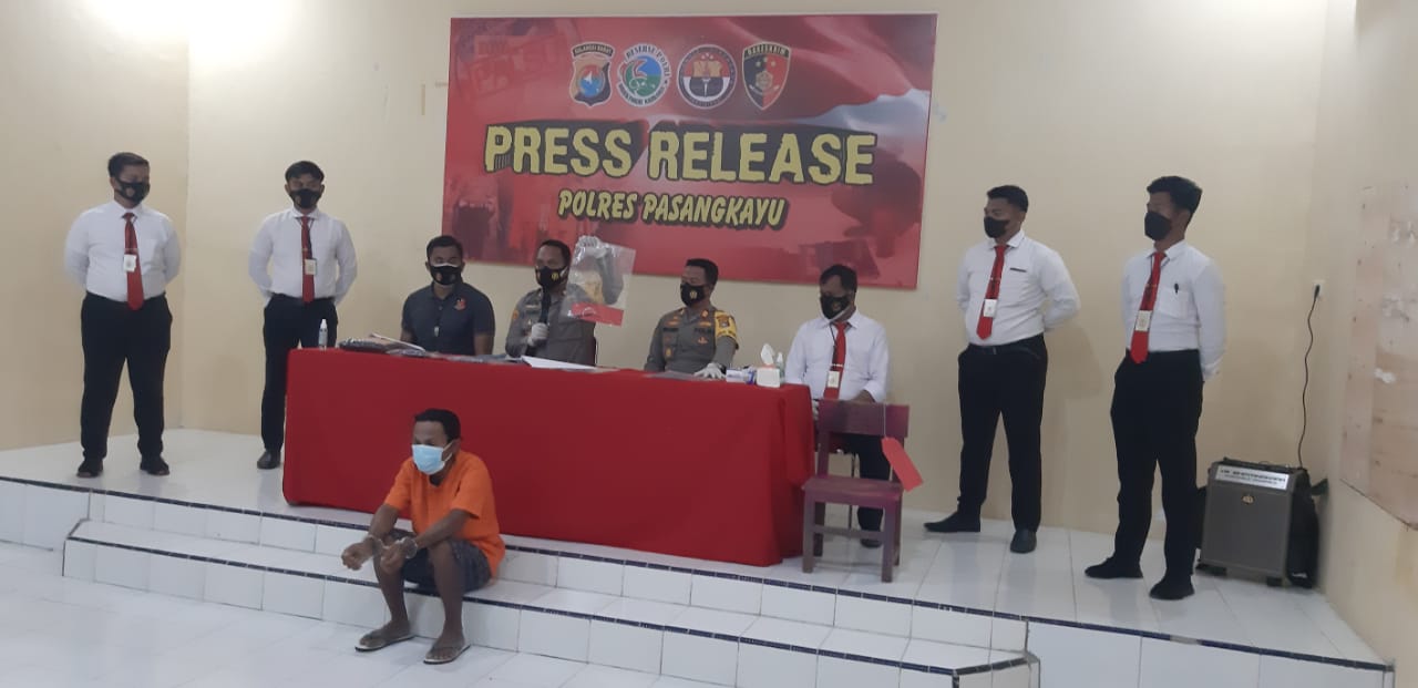 PASANGKAYU,Sulawesibersatu.com – Waka Polres Pasangkayu Kompol Ade Chandra C.Y., S.I.K., M.Sc didampingi Kabag Ops AKP Eduard Steffry Allan Telussa, S.I.K., M.Si, Kasat Reskrim IPTU Ronald Suhartawan Hadipura S.T.K., S.I.K., M.H dan KBO Sat Reskrim IPDA Iss Haryanto serta Kanit Pidum IPDA Firman Sanusi S.H pimpin Release Kasus Curat dengan cara pelaku memasuki rumah Korban yang sementara melaksanakan Sholat Idul Adha 20 Juli 2021 Lalu.