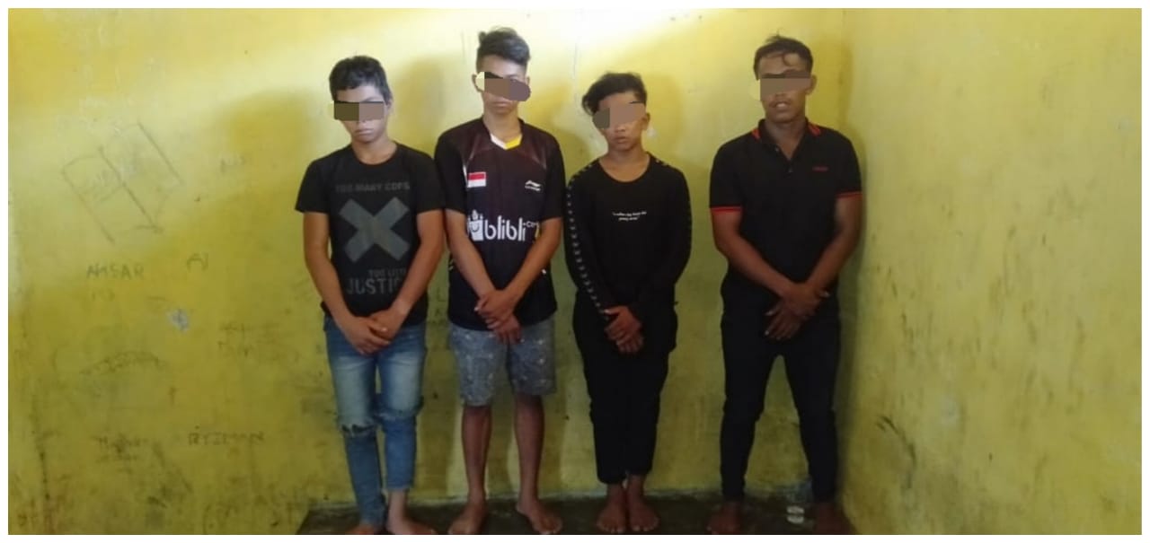 Empat pelaku masing-masing I (22), A (17), H (17). Ketiganya merupakan warga Desa Paddumpu Kecamatan Dampal Selatan Kabupaten Tolitoli. Berikutnya A (16), warga Desa Salumbia Kecamatan Dondo Kabupaten Tolitoli.
