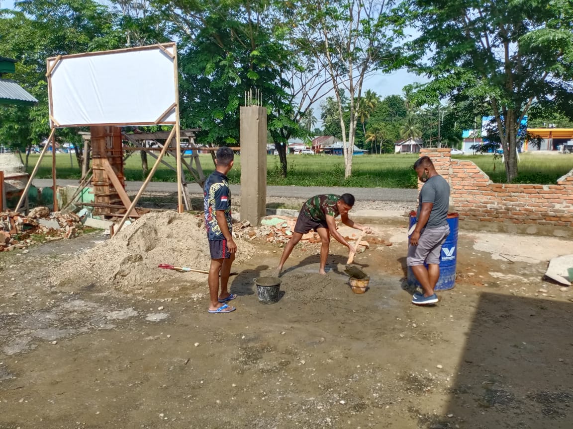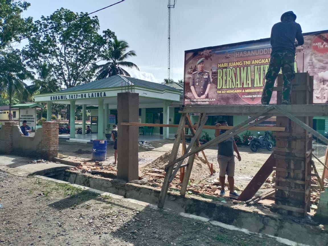 Kendari,Sulawesibersatu.com_Babinsa Koramil 04/Lainea Kodim 1417/Kendari melaksanakan Kerja Bakti renovasi pagar Kantor Koramil Lainea bertempat, Kel. Punggaluku, Kec. laeya, Kab. Konawe Selatan, Selasa (29/12/2020).