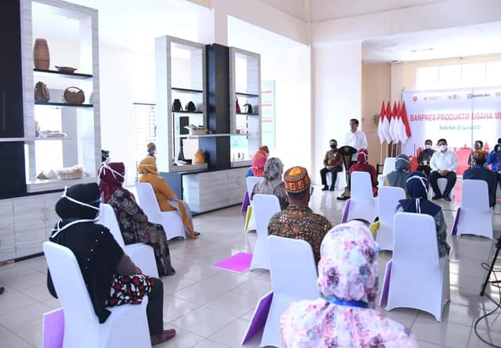 Aceh,Sulawesibersatu.com – Presiden Joko Widodo memberikan Banpres Produktif Usaha Mikro kepada para pelaku usaha mikro dan kecil di Provinsi Aceh. Acara penyerahan dilangsungkan di Pusat Layanan Usaha Terpadu KUMKM Provinsi Aceh, Kota Banda Aceh, Selasa, 25 Agustus 2020.