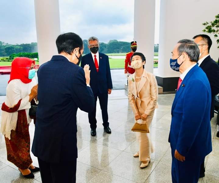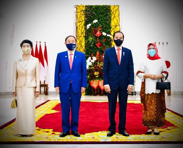 Kunjungan PM Yoshihide Suga kali ini juga merupakan kunjungan pertama seorang kepala pemerintahan ke Indonesia di masa pandemi Covid-19. Untuk itu, sejumlah penyesuaian dalam upacara penyambutan kenegaraan pun dilakukan, misalnya jumlah pasukan kehormatan yang terbatas dan dengan jarak yang lebih renggang.