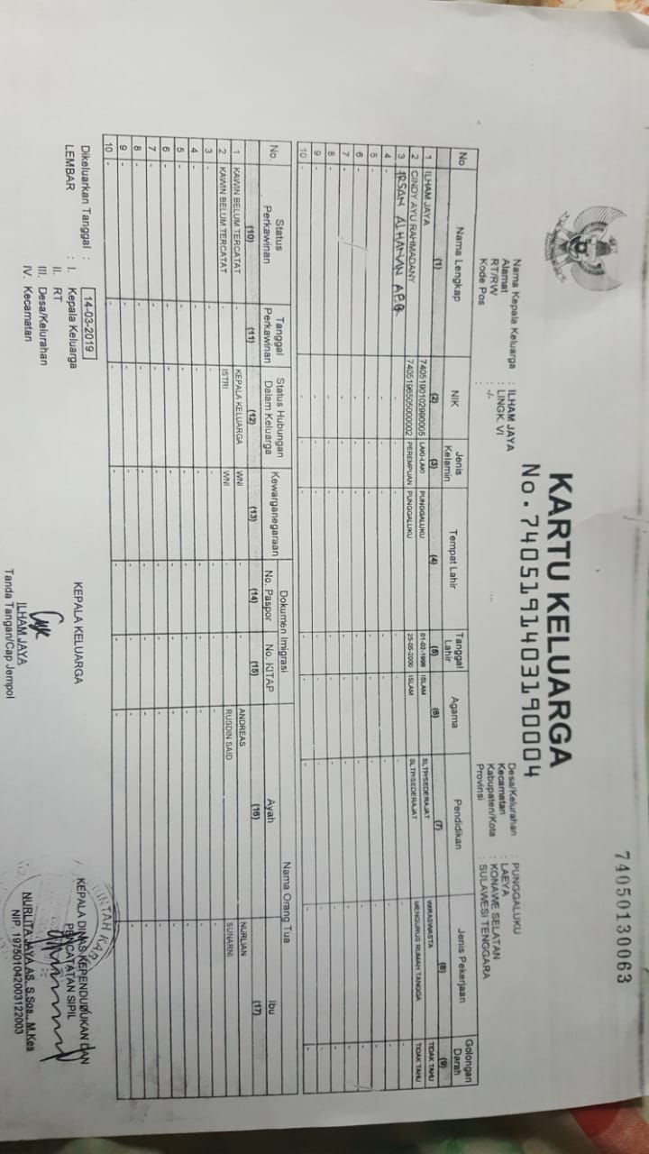 Saat Awak Media mengkonfirmasi tentang keluhan Ilham Jaya, melalui Via telpon,selaku Lurah Punggaluku mengatakan “Kalau saya dengan teman-teman kelurahan, kartu keluarganya ada, malah kepala lingkungan saya dia kasih liat ada, catatan saya ada karena semua yang ada kartu keluarganya itu saya catat dan setor di Kecamatan,” tuturnya.