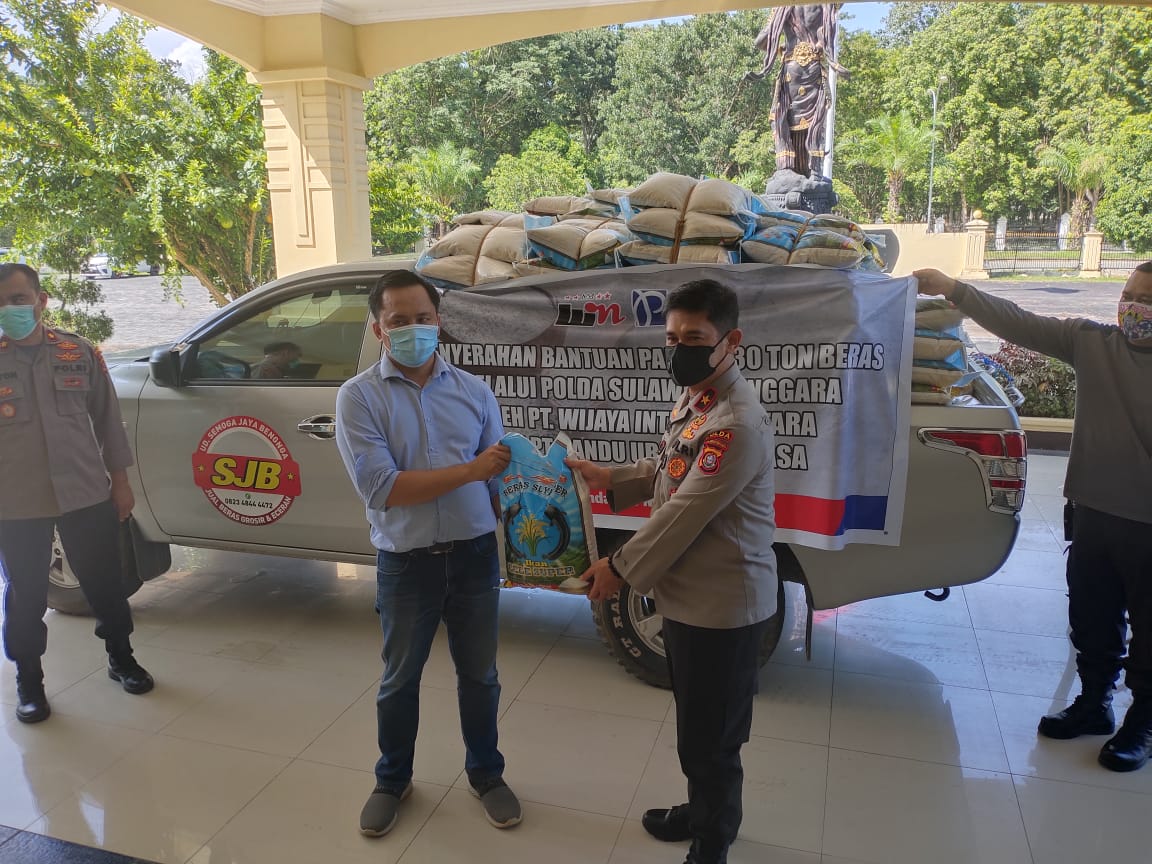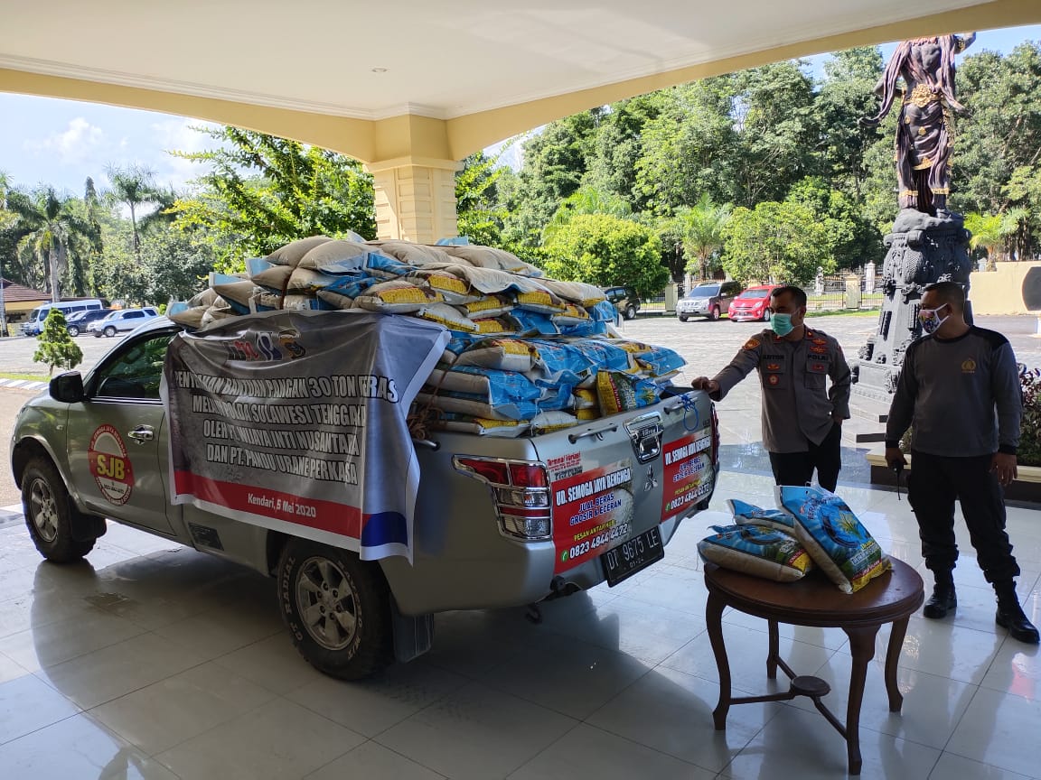 Konsel,Sulawesibersatu.com – Bantuan demi’ bantuan terus bergulir untuk membantu masyarakat yang terdampak covid-19, salah satu perusahaan swasta yang berada di Konawe Selatan, yakni PT. Wijaya Inti Nusantara (WIN) bersama PT. Pandu Urane Perkasa menyerahkan bantuan sebanyak 30 Ton beras melalui Polda Sultra, Selasa 5 Mei 2020.