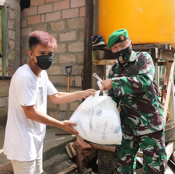Pembagian sembako gratis untuk setiap rumah nya yang mendapat bantuan hari ini akan di beri label,
