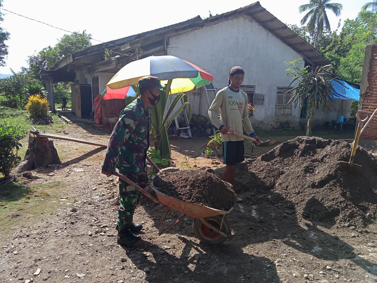 Sementara itu, Makruf (41) pemilik rumah, mengucapkan terima kasih kepada Babinsa dan masyarakat yang telah peduli mau membantu mengangkat pasir dan batu bata.