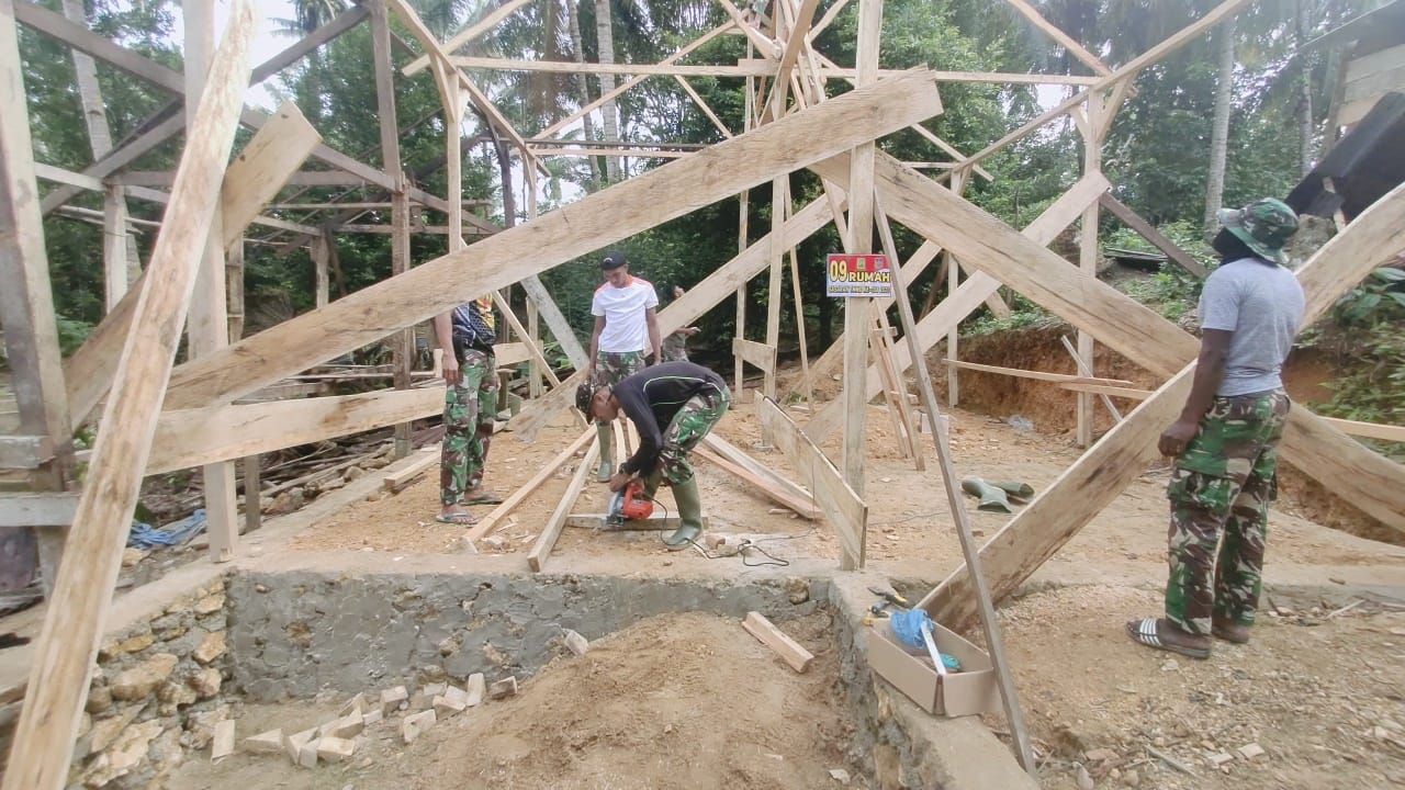 Kegiatan TMMD ke-108 Kodim 1417/Kendari sudah memasuki hari ketiga sejak dimulai 30 Juni lalu, hari ini Babinsa Sertu Hudring dan rekan rekannya bersama warga sudah memasuki hari ke proses pengerjaan sasaran fisik TMMD bedah rumah di Desa Matabaho Kecamatan Wawonii Barat, Kabupaten Konkep, Jumat (3/7/2020). “Saat ini rumah tak layak huni yang kita kerjakan ini merupakan rumah warga tidak mampu, milik Laboki (49) warga Desa Matabaho,” ujar Sertu Hudring.