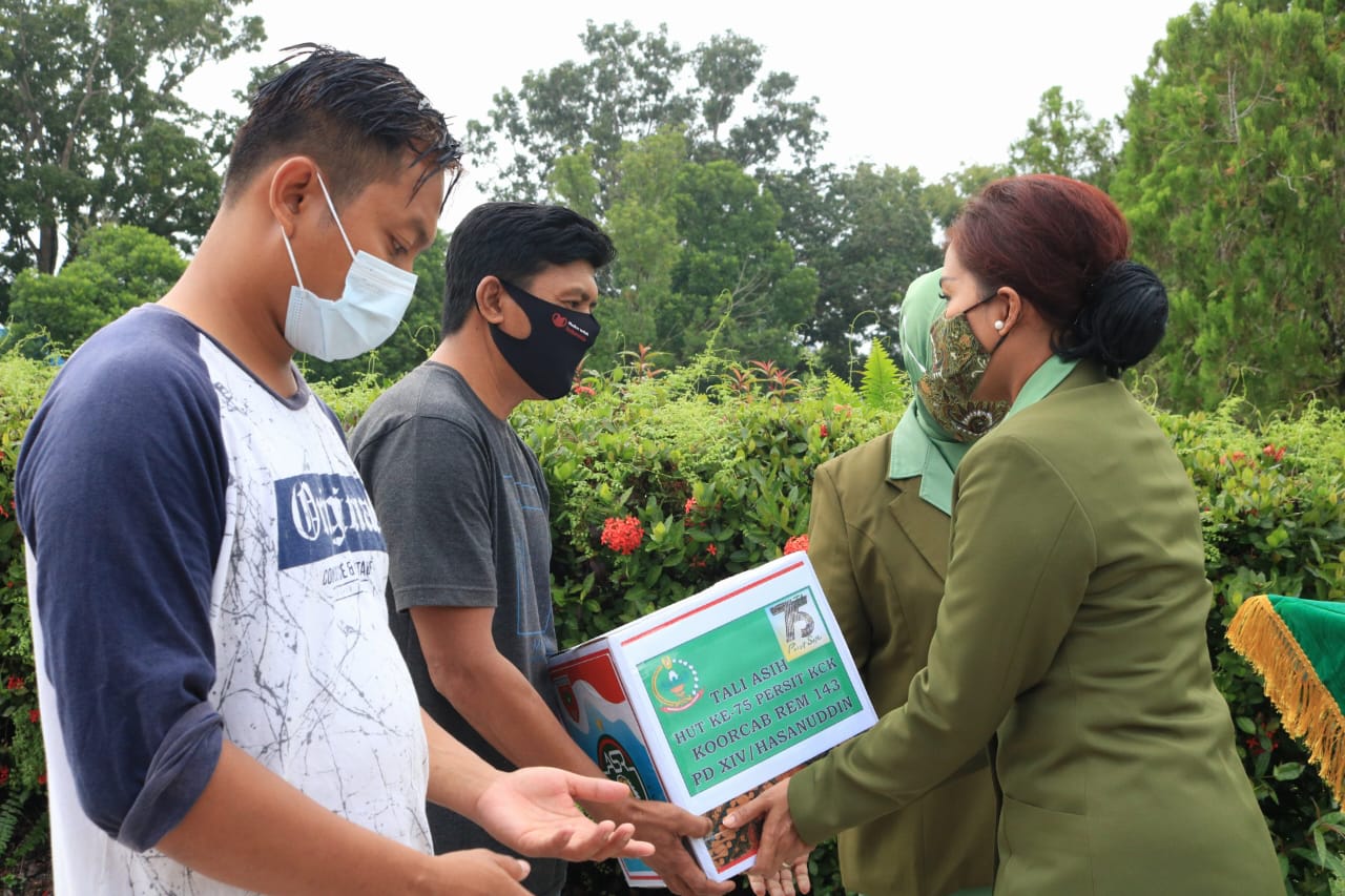 Kegiatan pemberian sembako tersebut mengakhiri rangkaian kegiatan Anggota Persit Kartika Chandra Kirana jajaran Koorcab Rem 143 PD XIV/ Hasanuddin.(Dany)