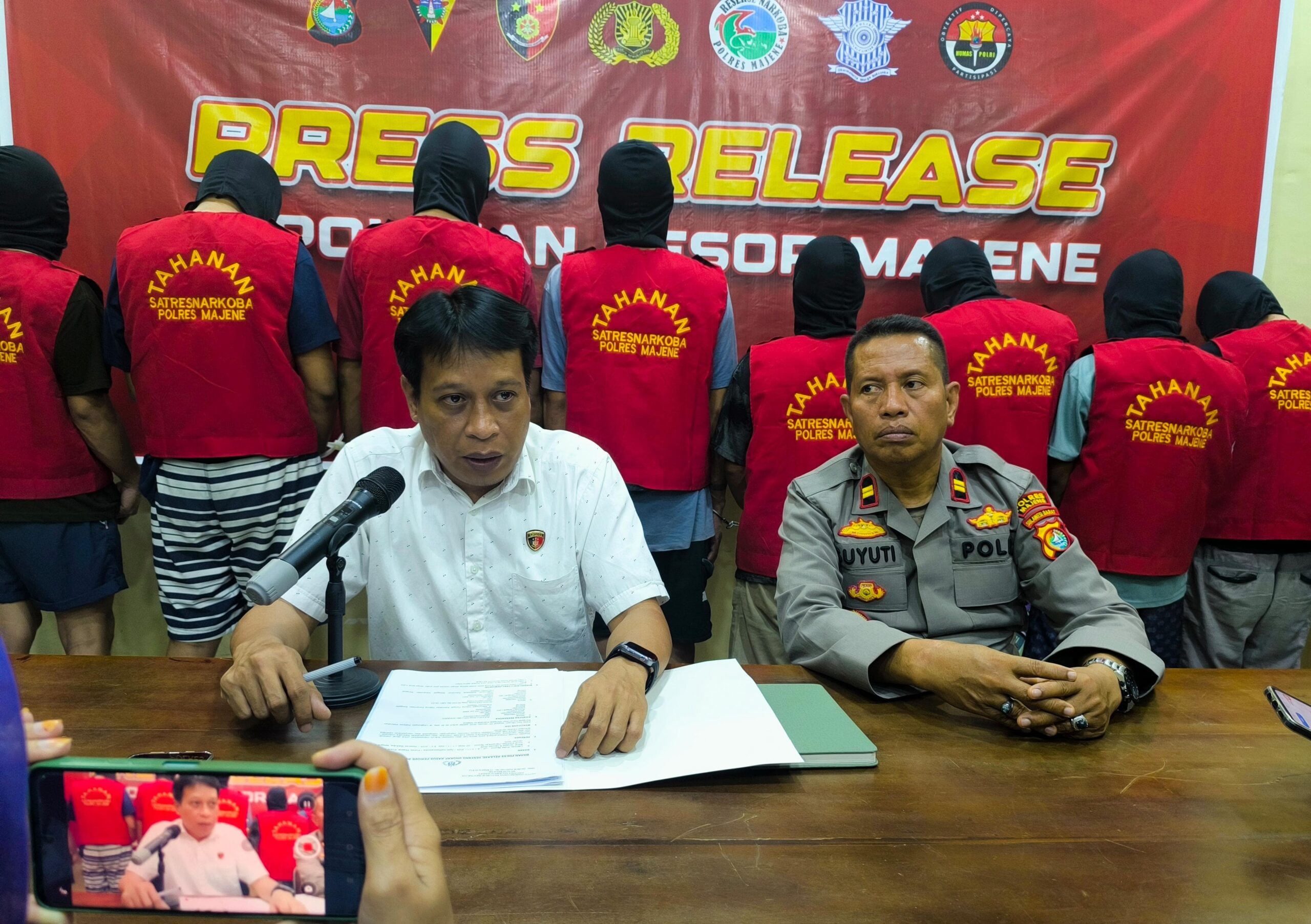 Satuan Reserse Narkoba (Satres Narkoba) Polres Majene menggelar konferensi pers terkait pengungkapan kasus penyalahgunaan narkotika di wilayah hukum Polres Majene.