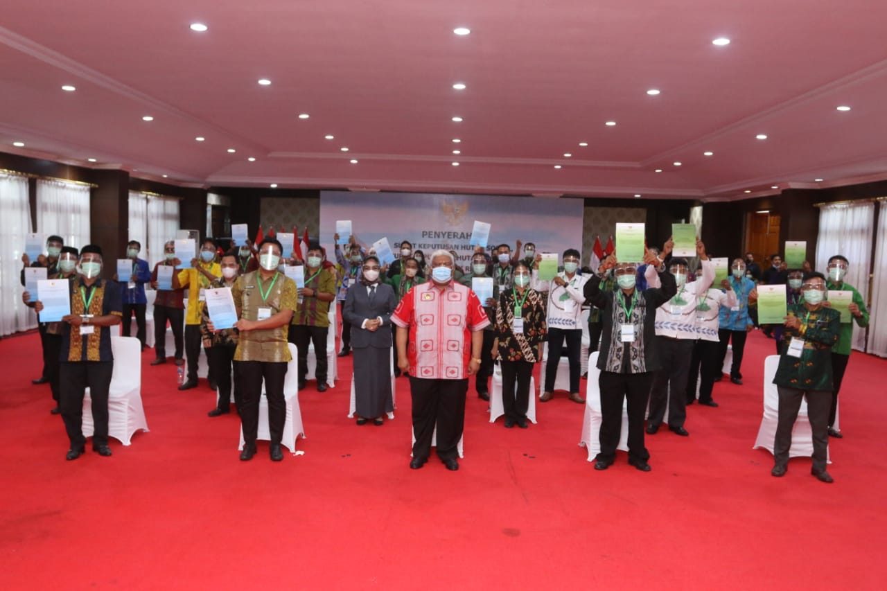 Sejumlah perwakilan warga Sultra penerima SK tersebut hadir secara virtual di Rumah Jabatan Gubernur Sultra, dan turut dihadiri oleh Gubernur Ali Mazi. Sekretaris Daerah Provinsi Sultra Nur Endang Abbas dan Kepala OPD terkait tampak mendampingi.
