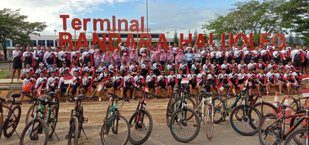 KONSEL,Sulawesibersatu.com – Dalam menyemarakan perayaan Hari Ulang Tahun (HUT) kemerdekan RI ke- 75, H-1 Prajurit Yonif 725/Woroagi kompak melaksanakan pawai sepeda bersama-sama dengan masyarakat umum area kompleks 725 yang dilengkapi kostum bertuliskan “Woroagi Gowes Team” mengayuh sepeda mulai star Mako Yonif hingga finish terminal bandara Halu Oleo Kendari, Minggu (16/8/2020).