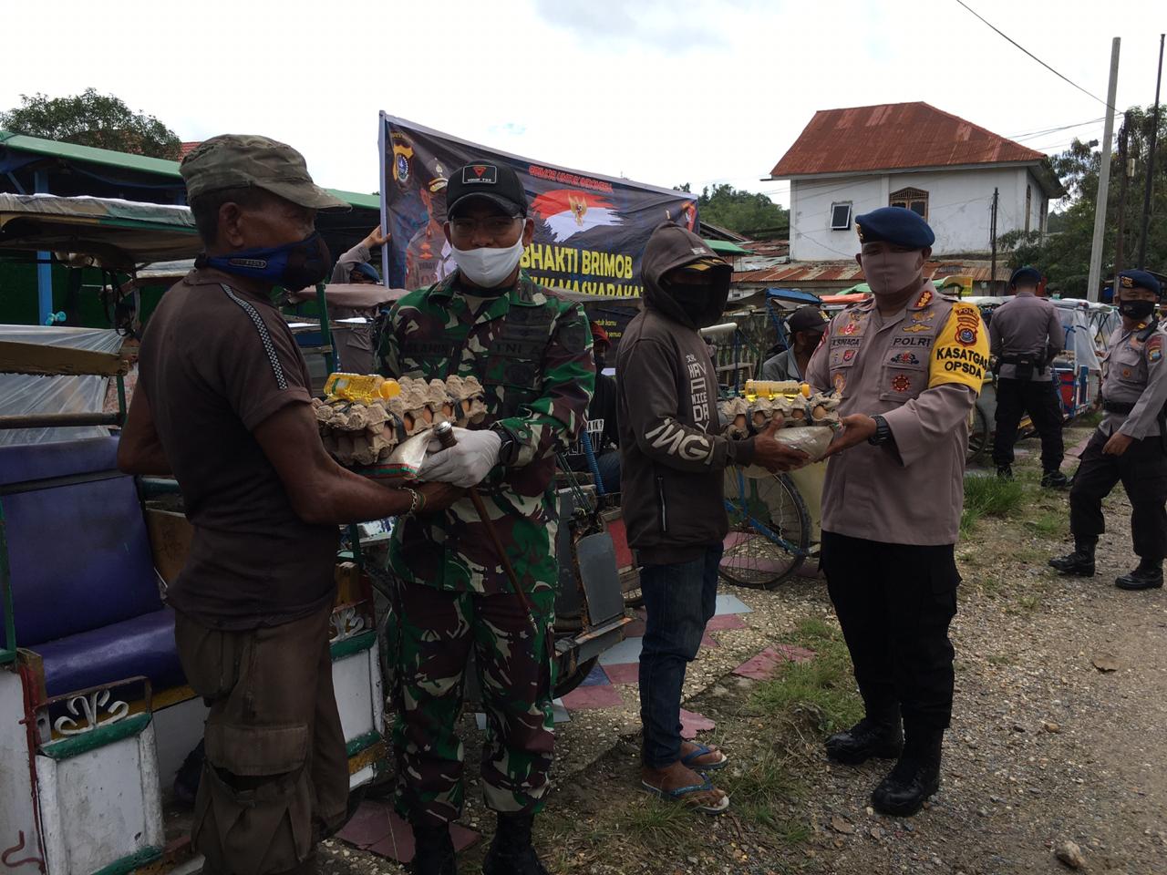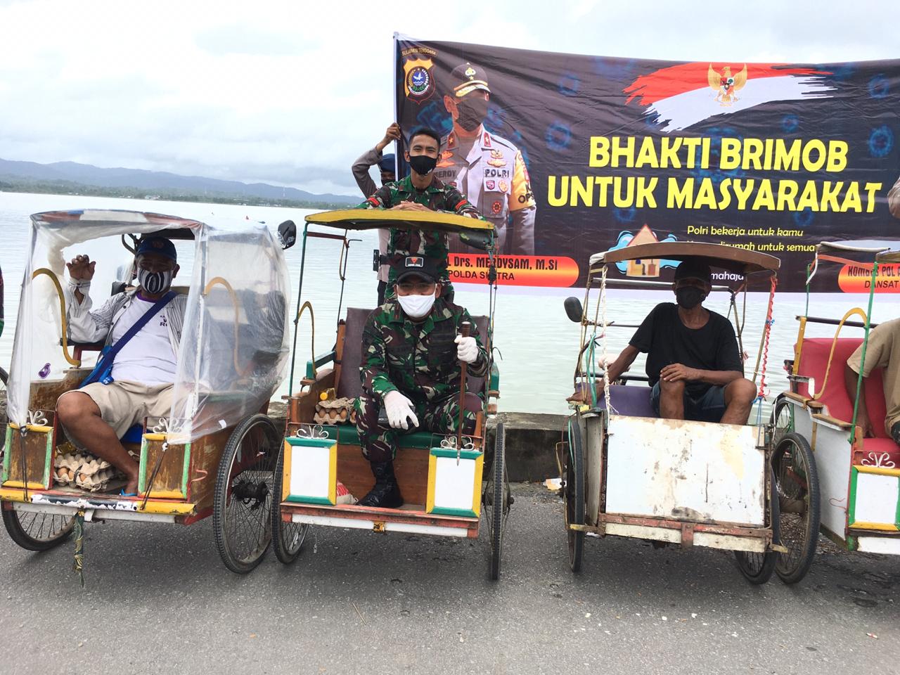 Dalam kegiatan ini Yonif 725/Woroagi bersama Brimobda Sultra membagikan sebanyak 200 paket sembako kepada tukang becak di tiga tempat, yakni di wilayah Kendari Beach, Pasar Anduonohu, dan Kelurahan Lahundape (Kemaraya).