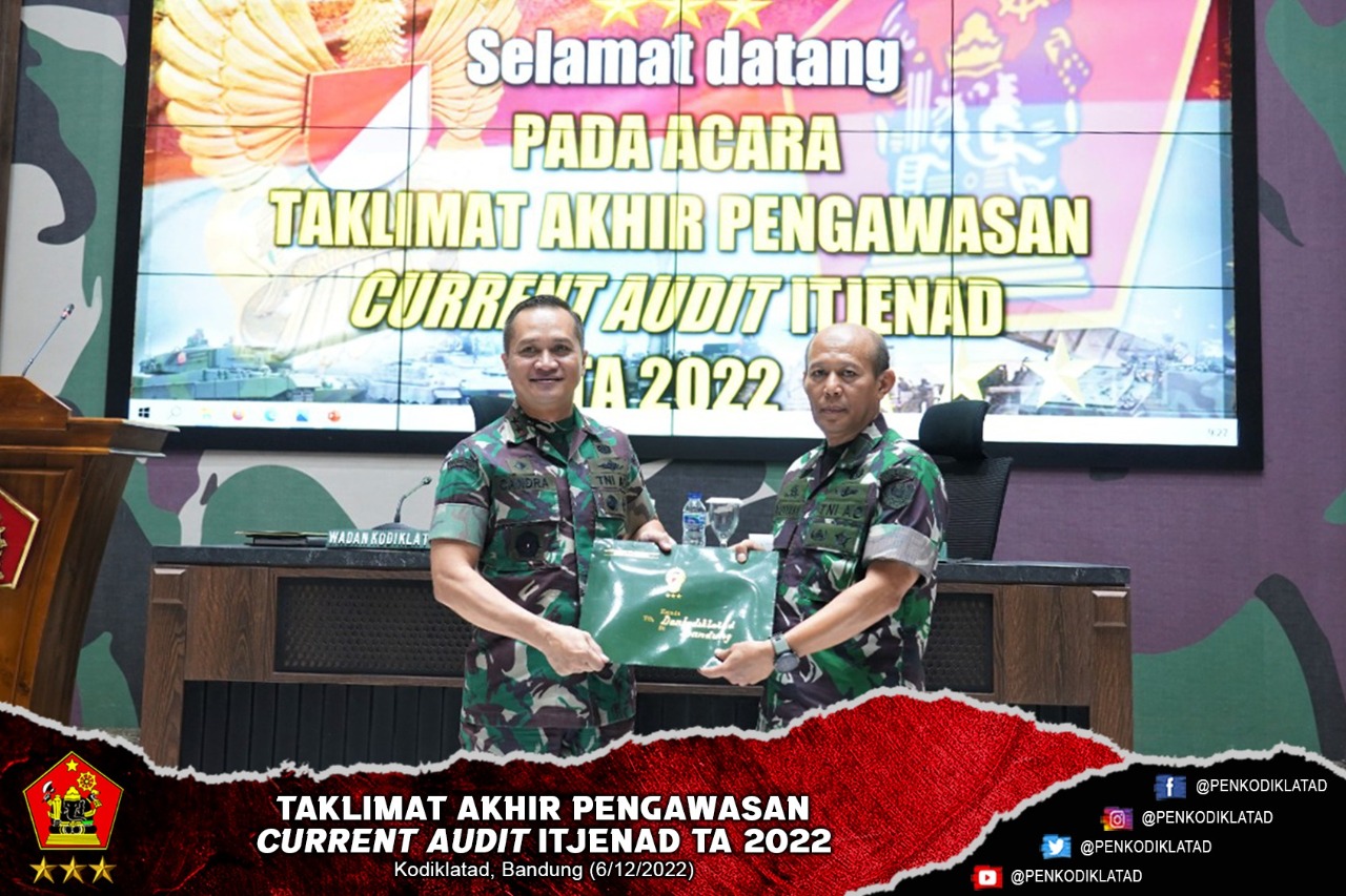 Bandung,sulawesibersatu.com – Guna menyampaikan hasil Current Audit yang telah dilaksanakan oleh tim Irjenad, Wakil Komandan Kodiklatad, Mayjen TNI Candra Wijaya memimpin Taklimat Akhir Pengawasan Current Audit Itjenad TA 2022 di ruang Rapat Ganesha Makodiklatad. Selasa (6/12/2022)