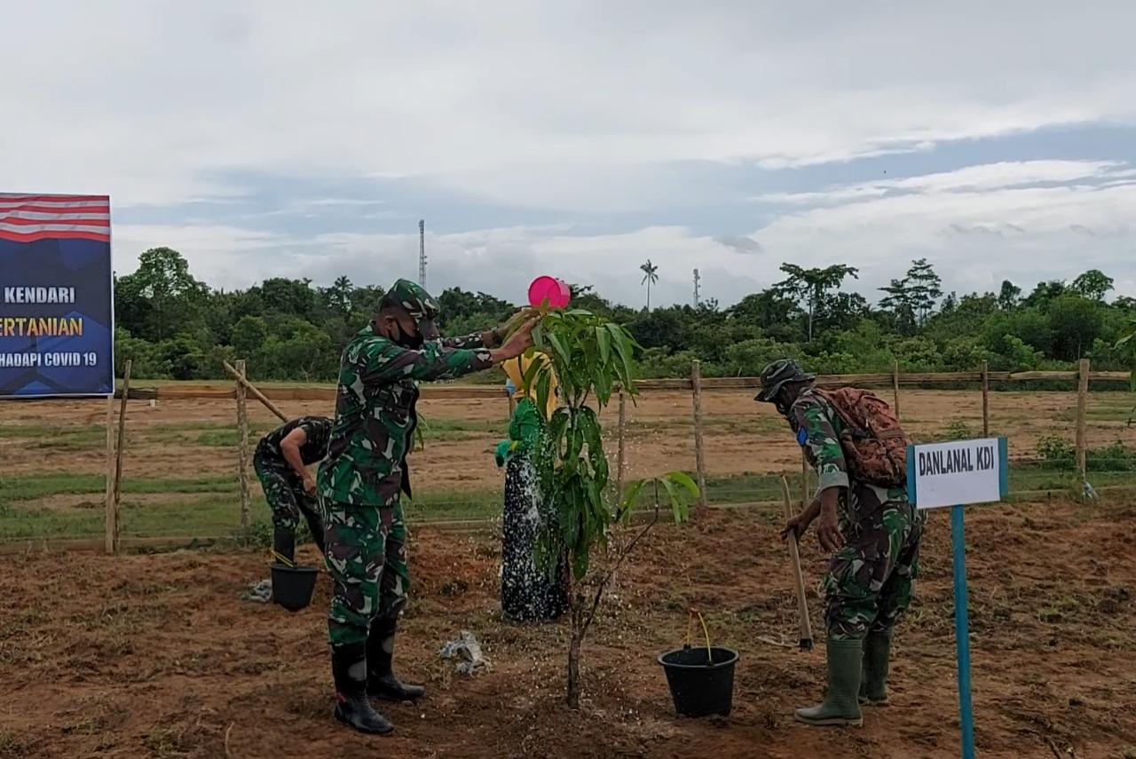 Pjs. Paspotmar Lanal Kendari, Kapten Laut (E) Steven Garszperz menyampaikan “Mengingat lokasi lahan pertanian dan jenis pohon yang berbuah dalam jangka waktu yang tidak lama, jenis-jenis pohon seperti ubi, pisang dan pepaya kami pilih sebagai pohon yang cocok untuk persediaan apabila terjadi kelangkaan pangan akibat pandemi Covid -19 saat ini” ujarnya.