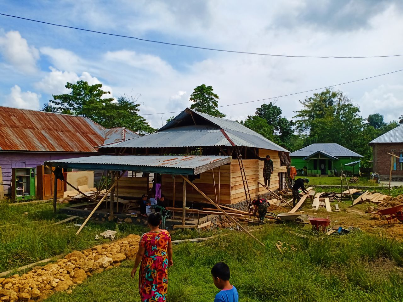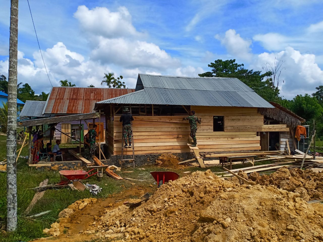“Alhamdulilah pak, karena bapak-bapak TNI hadir disini, Rumah saya dapat dibangun dengan lancar dan aman agar keluarga kami dapat menempati rumah yang layak huni. “ucap maona pemilik rumah.