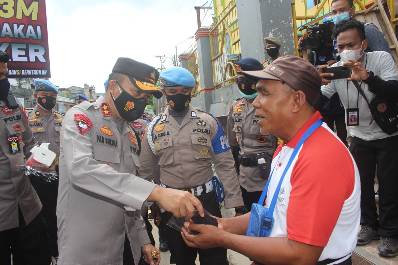 “Hal ini penting karena Covid – 19 bisa dicegah dengan kesadaran masyarakat dengan disiplin melaksanakan 3 M, (Memakai masker, Menjaga jarak & Mencuci tangan),” tegas Kapolda Sultra.