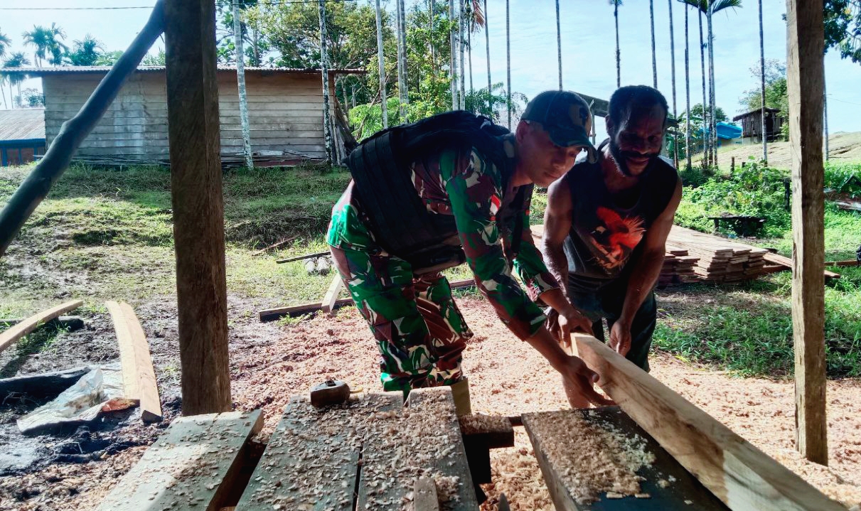 Boven Digoel,fokustime.com – Pada tanggal, 25 Januari 2023, dalam upaya meningkatkan perekonomian masyarakat Satgas Pamtas Yonif 725/Wrg yang dibawah naungan Korem 174/Atw, Pos Kombut membantu masyarakat meningkatkan sumber daya manusia dalam kegiatan pemanfaatan kayu bahan mentah dijadikan bahan Pakai seperti Pembuatan kursi dan bahan dasar pembuatan Rumah layak huni, di Kampung Kombut, Distrik Kombut, Kab. Boven Digoel.