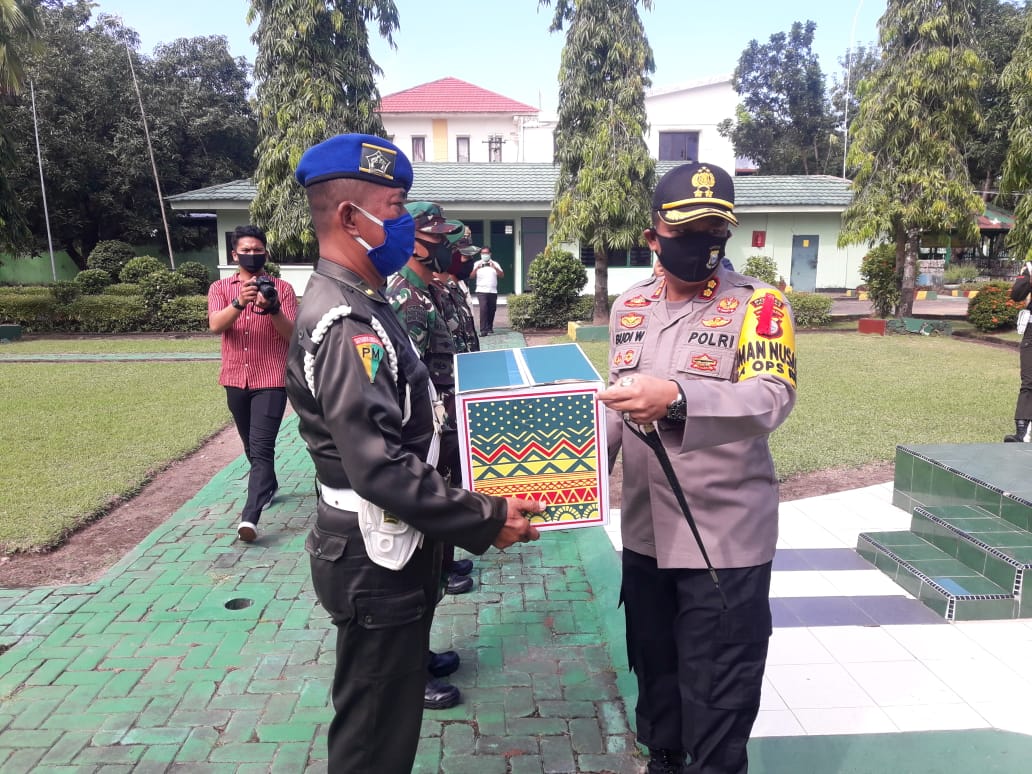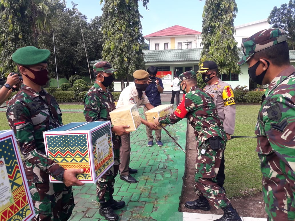 Takalar,Sulawesi bersatu.com– Kapolres Takalar AKBP Budi Wahyono, S.H., S.I.K., M.H., didampingi Wakapolres Kompol H. Andi Tonra Lipu, S.H., M.H. menyerahkan bingkisan lebaran kepada anggota Kodim 1426 Takalar, Yonif 726 Tamalatea dan Subdenpom XIV/1-1 Takalar di Lapangan Apel Kodim 1426 Takalar, Rabu (13/05/2020).