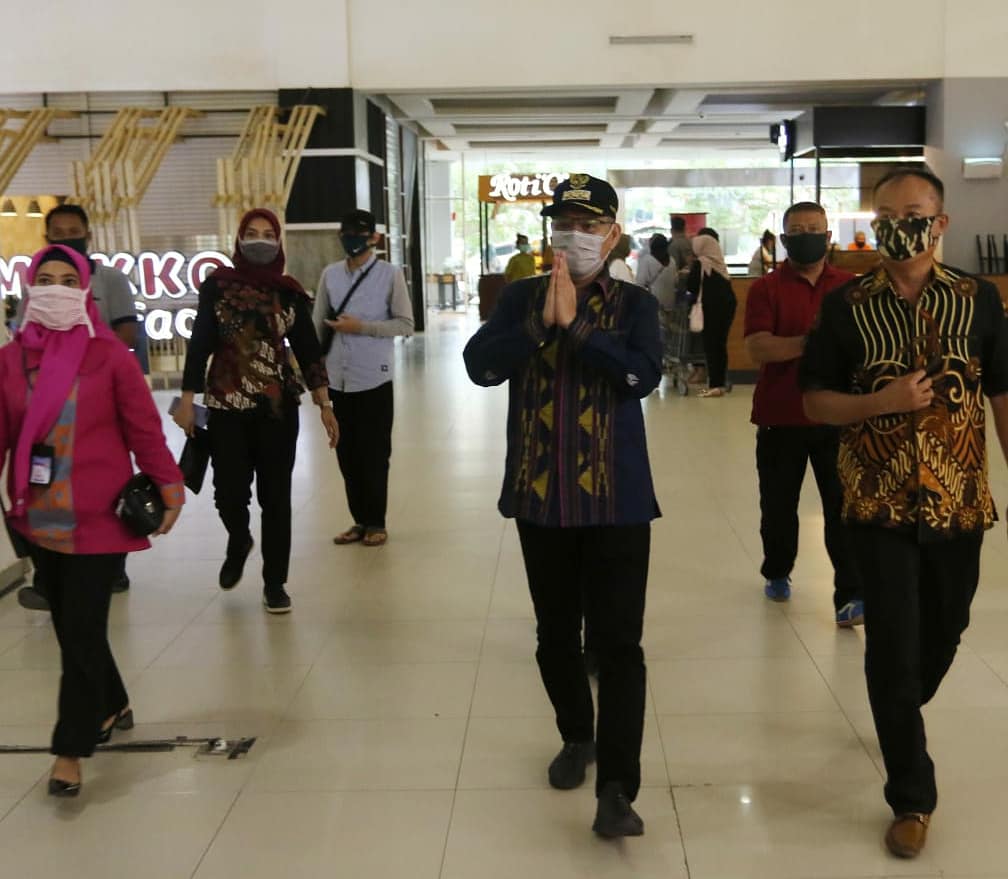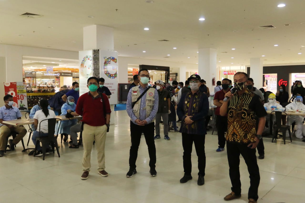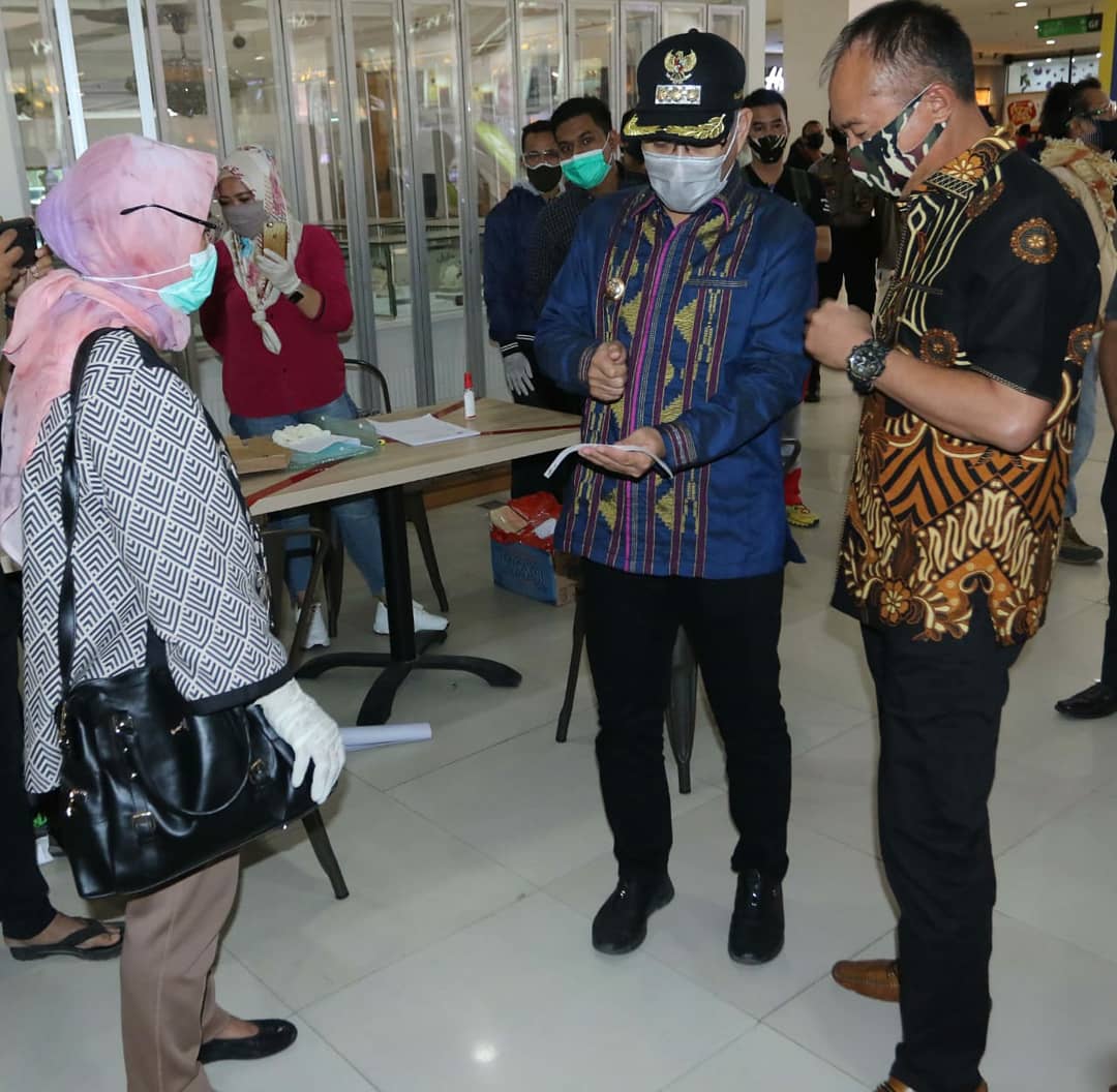 Wali Kota didampingi Komandan Kodim 1417 Kendari, meluncurkan gelang khusus isolasi covid-19 di Lippo Plaza Kendari, saat karyawan dan pengunjung menjalani rapid tes.