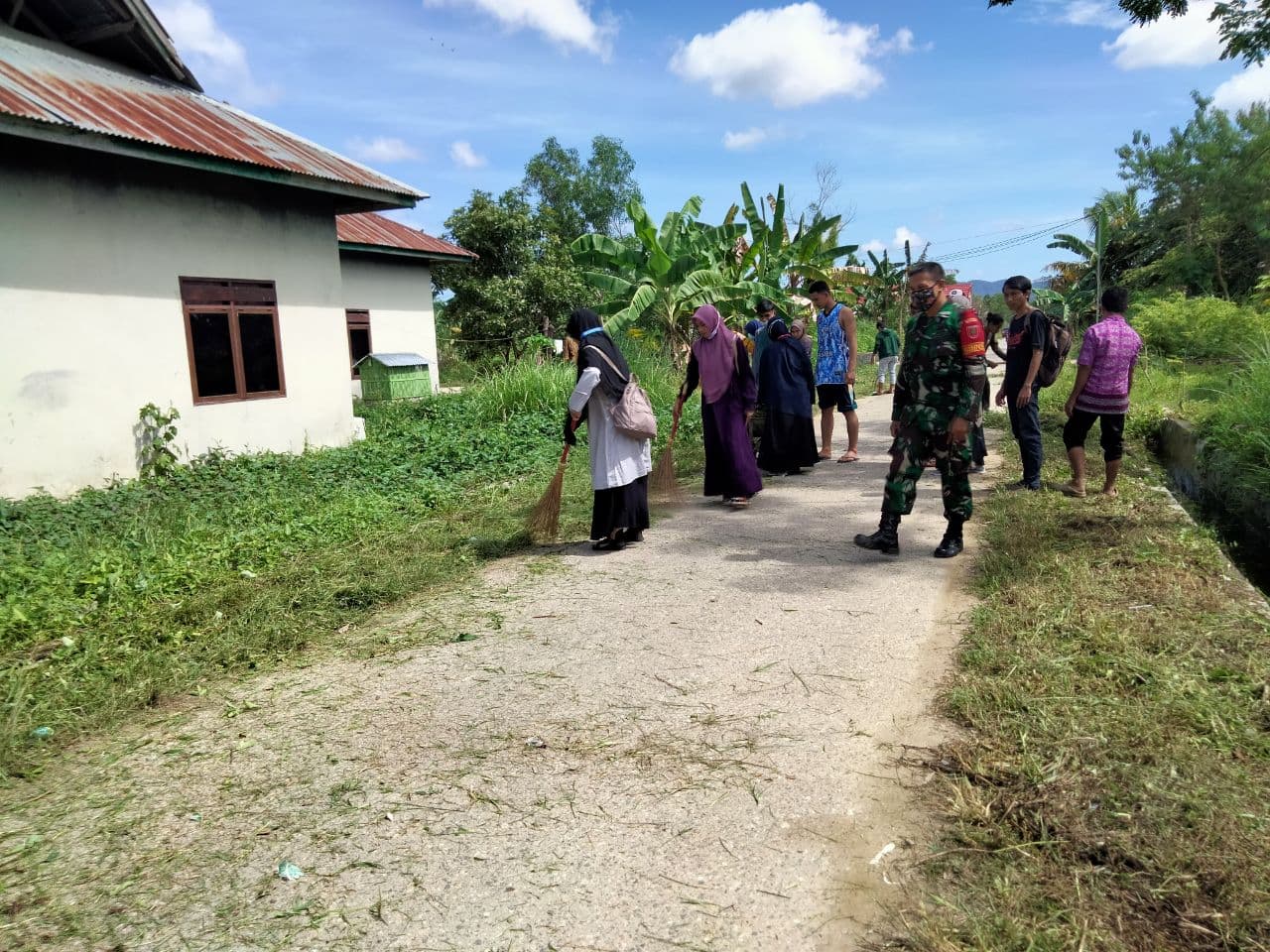 Danramil 13/Poasia Kapten Inf Bambang mengatakan, pembersihan lingkungan jalan di seputaran kantor desa di wilayah binaannya ini dilakukan dengan secara swadaya dan dan juga secara manual  dengan membawa alat kerja seadanya.