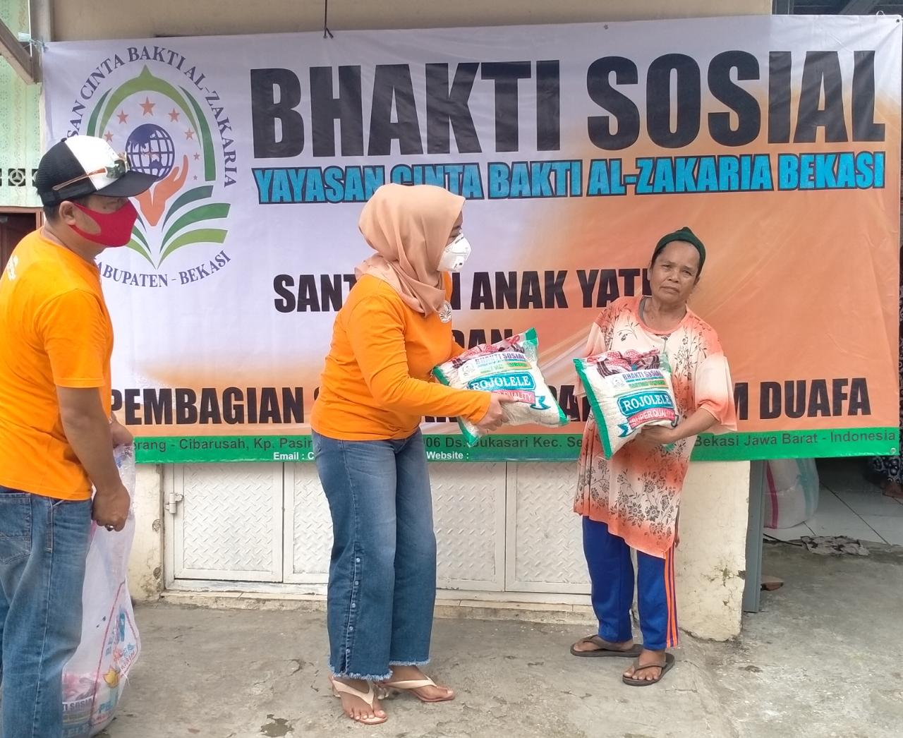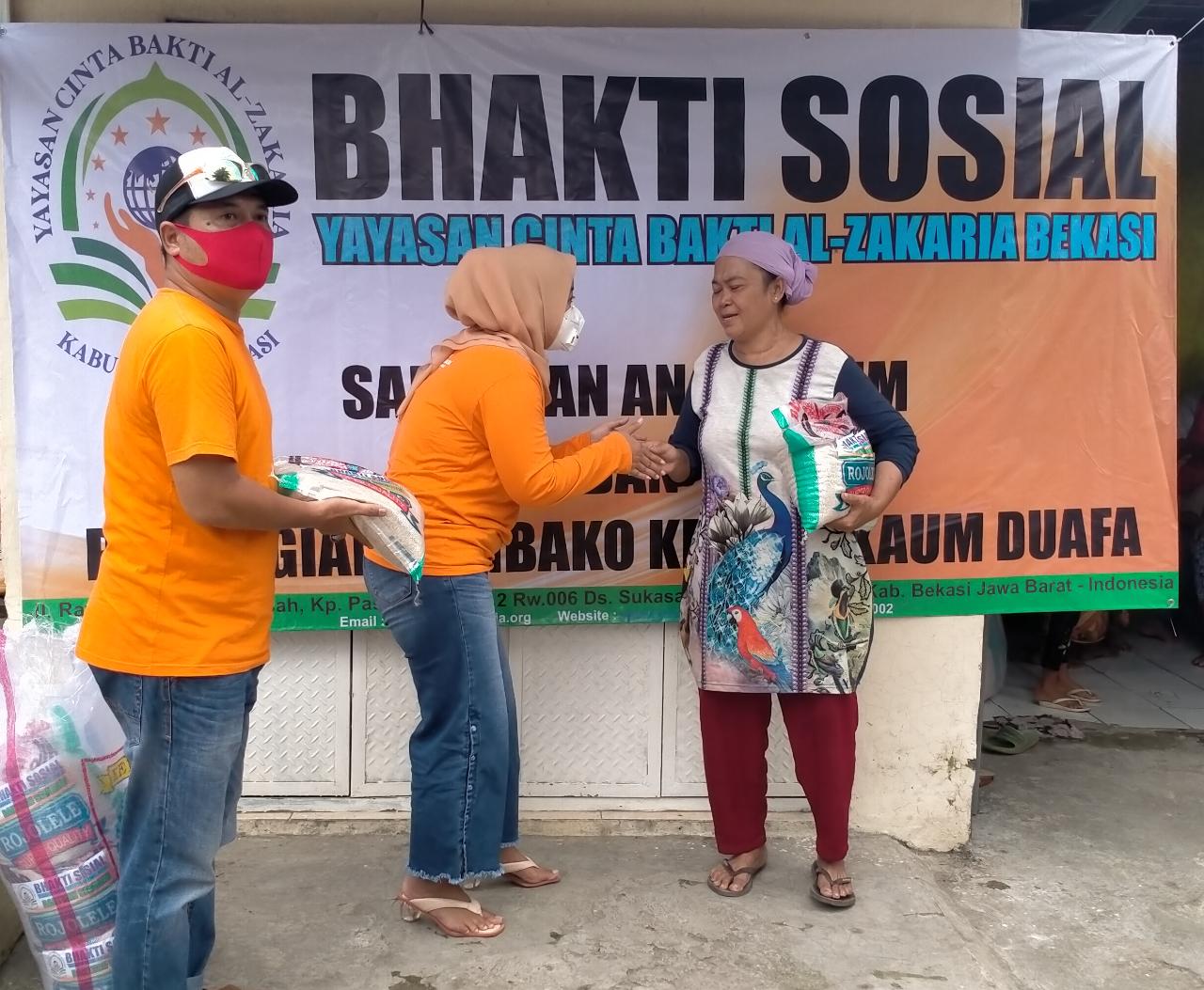 Hendra Kusuma ketua Yayasan Cinta Bakti Al-Zakaria Bekasi menyelenggarakan Bhakti sosial untuk masyarakat di beberapa wilayah diantaranya, kampung Pasir konci desa pasirsari kecamatan Cikarang Selatan,kampung cebong desa Mekarjaya kecamatan Cikarang selatan,kampung pisang batu desa kertamukti kecamatan cibitung Rabu (29-04-2020 ).